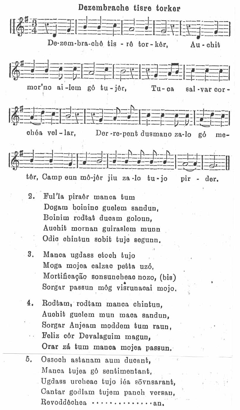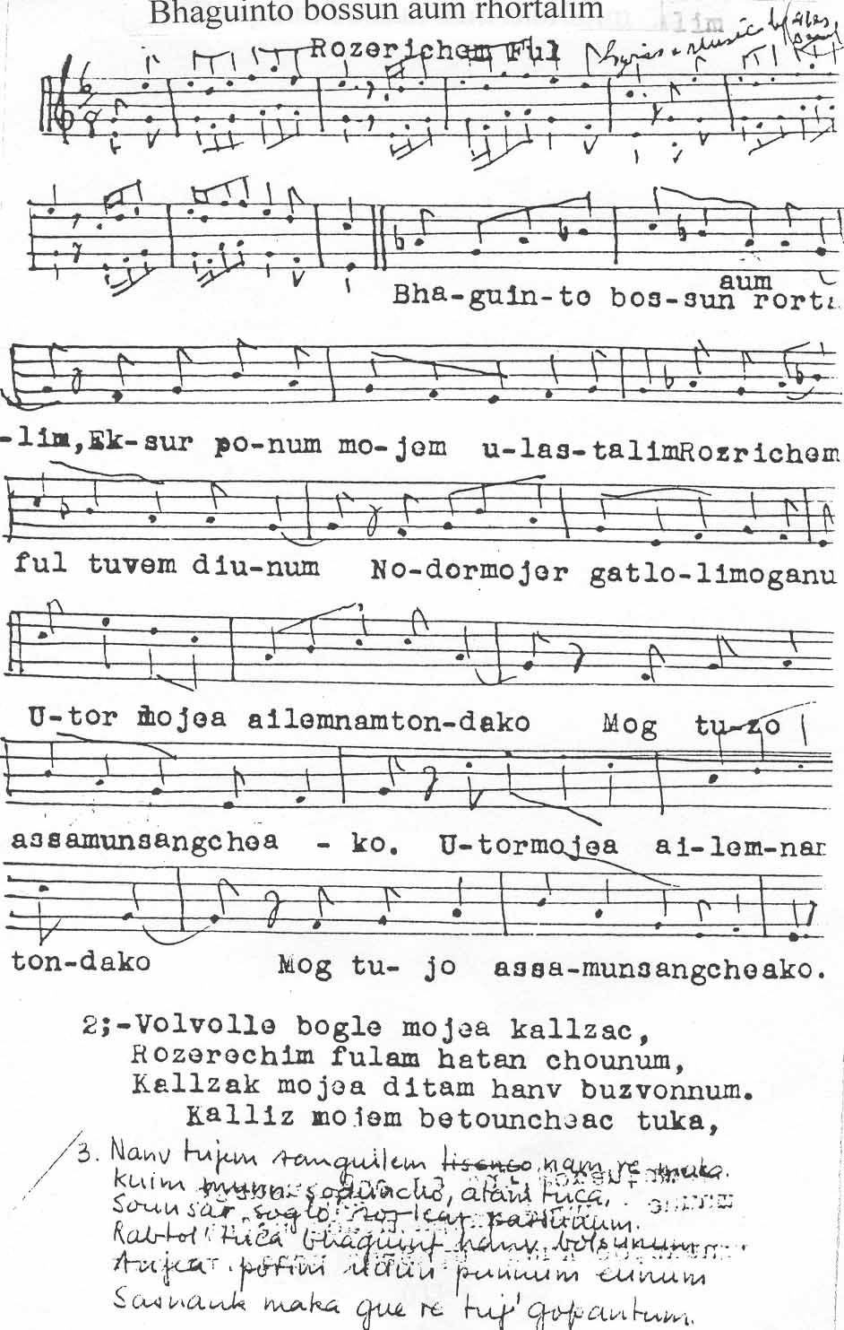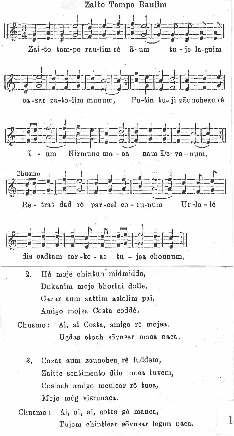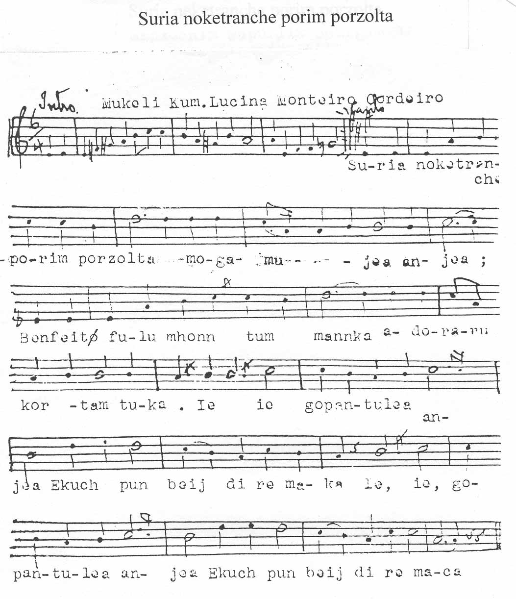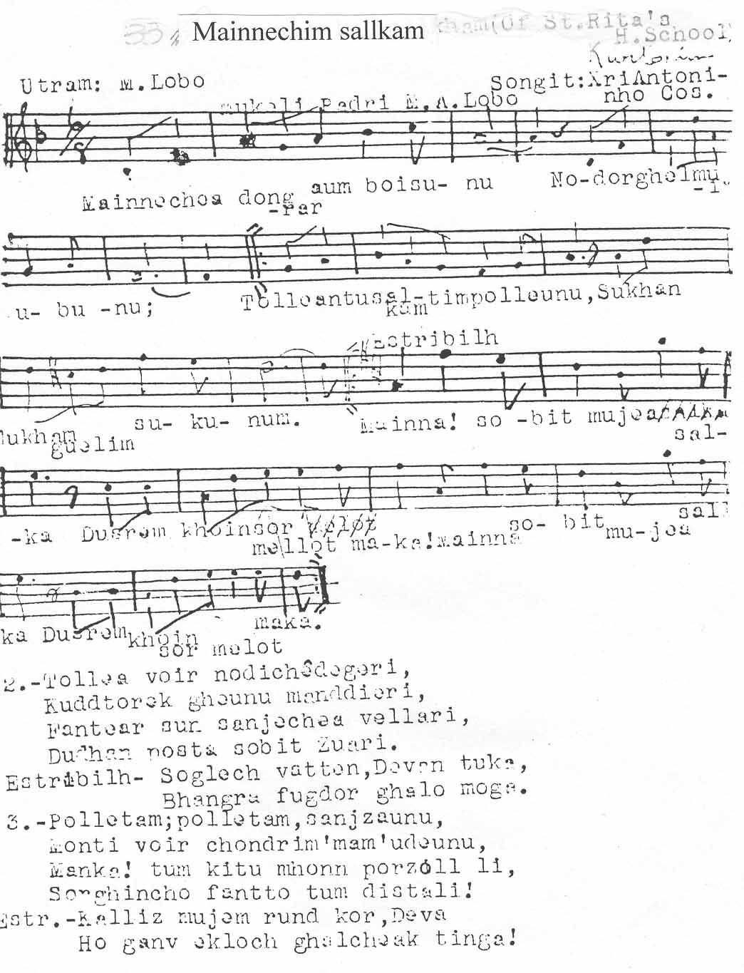 Mr. André Xett handed over the copyright to this anthology of dulpods and mandos personally to me in our home village Chorão, Goa. His son Mr. André Tiburcio Fernandes confirmed it in writing on 30th April, 2003. We thank them both for handing over this aspect of Goan culture to posterity. I would be only too happy if these songs are sung and find world wide circulation. The translation of these songs is to be found in the links "Dulpod" and "Mando".
