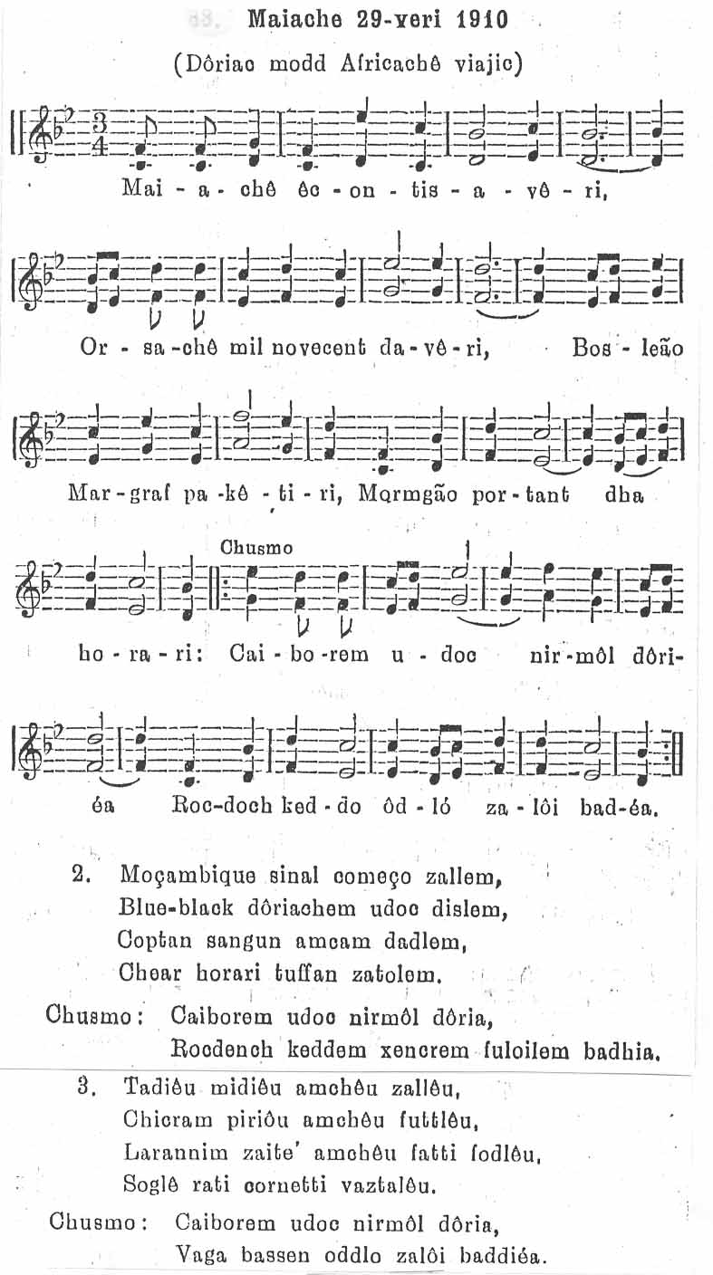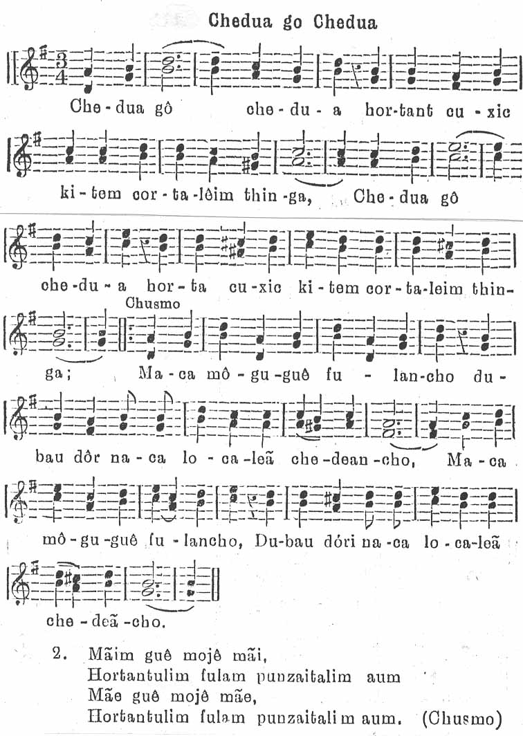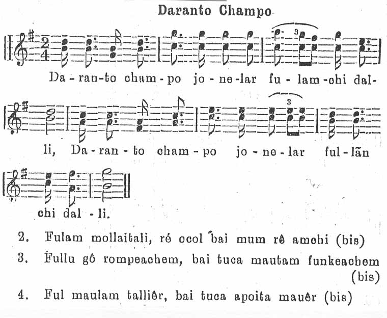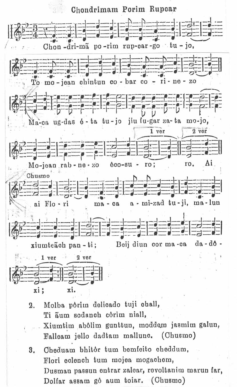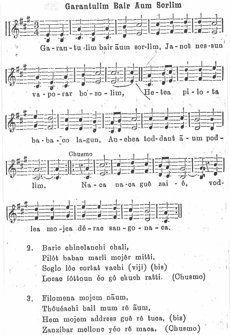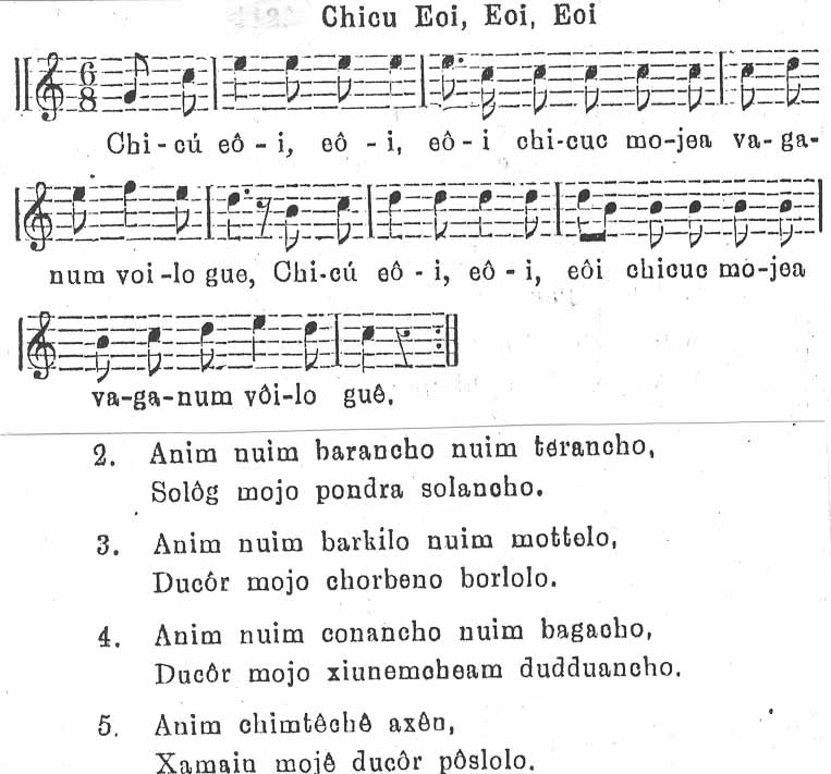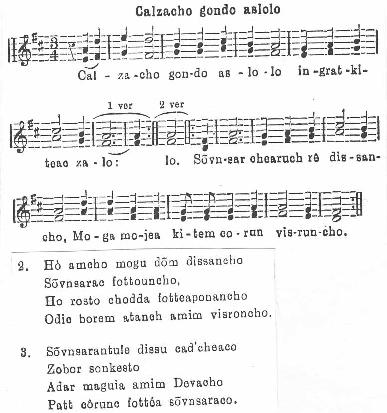 Mr. André Xett handed over the copyright to this anthology of dulpods and mandos personally to me in our home village Chorão, Goa. His son Mr. André Tiburcio Fernandes confirmed it in writing on 30th April, 2003. We thank them both for handing over this aspect of Goan culture to posterity. I would be only too happy if these songs are sung and find world wide circulation. The translation of these songs is to be found in the links "Dulpod" and "Mando".