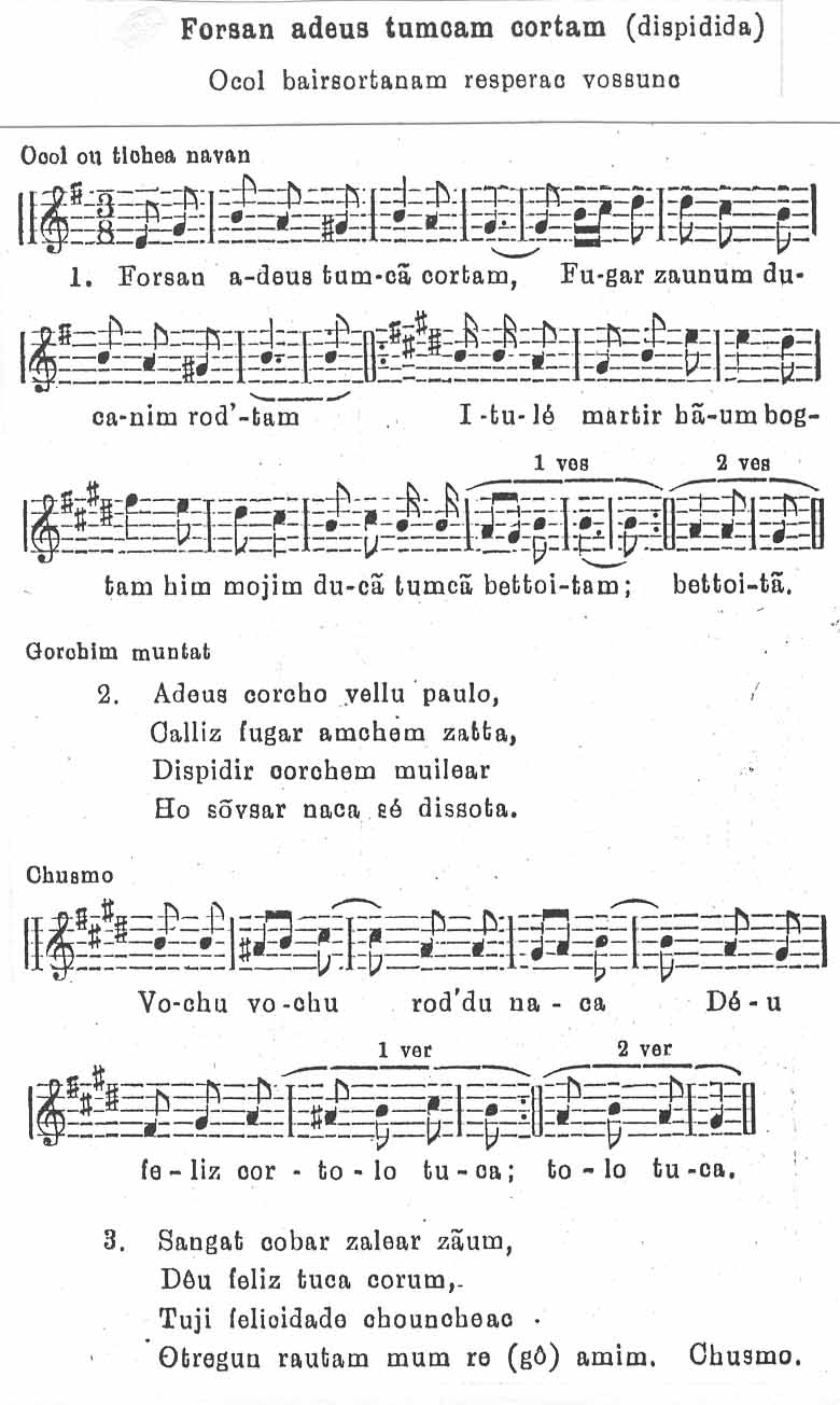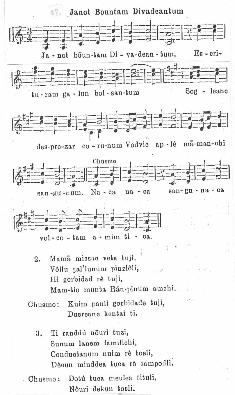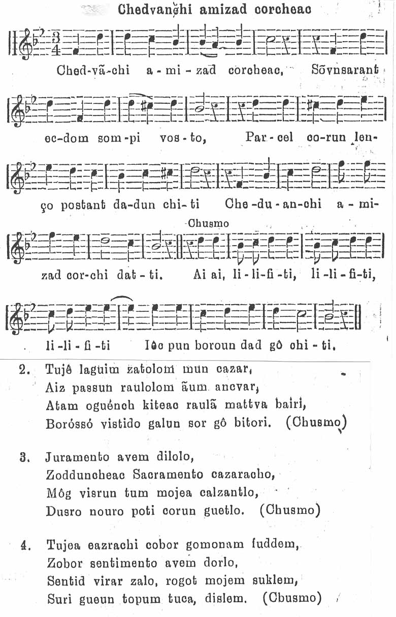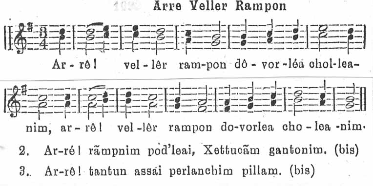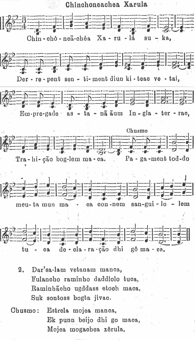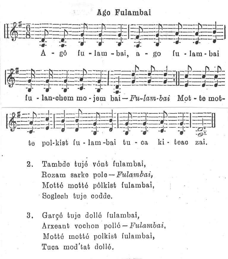 Mr. André Xett handed over the copyright to this anthology of dulpods and mandos personally to me in our home village Chorão, Goa. His son Mr. André Tiburcio Fernandes confirmed it in writing on 30th April, 2003. We thank them both for handing over this aspect of Goan culture to posterity. I would be only too happy if these songs are sung and find world wide circulation. The translation of these songs is to be found in the links "Dulpod" and "Mando".