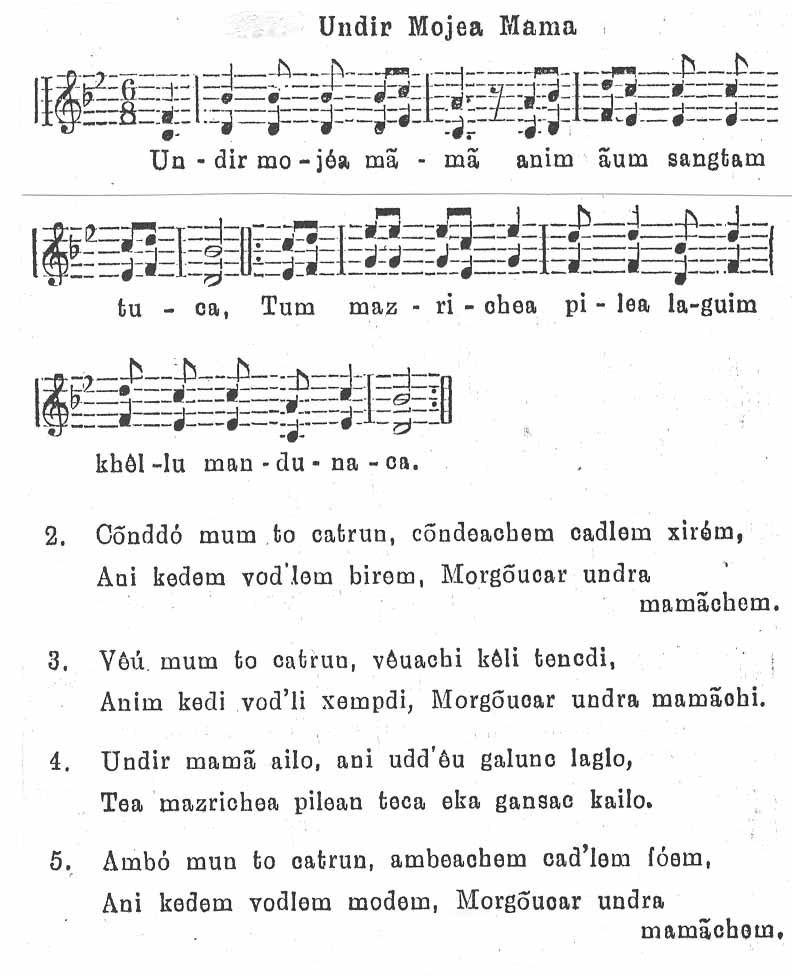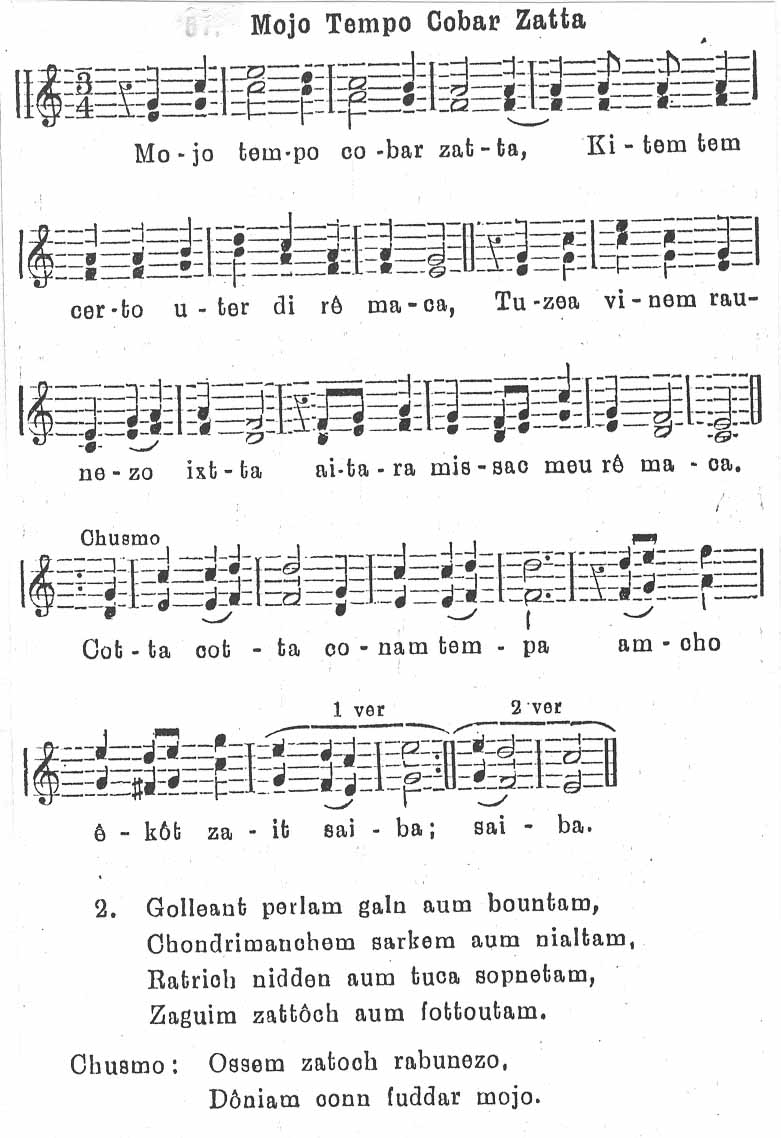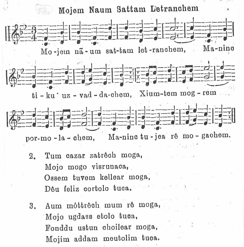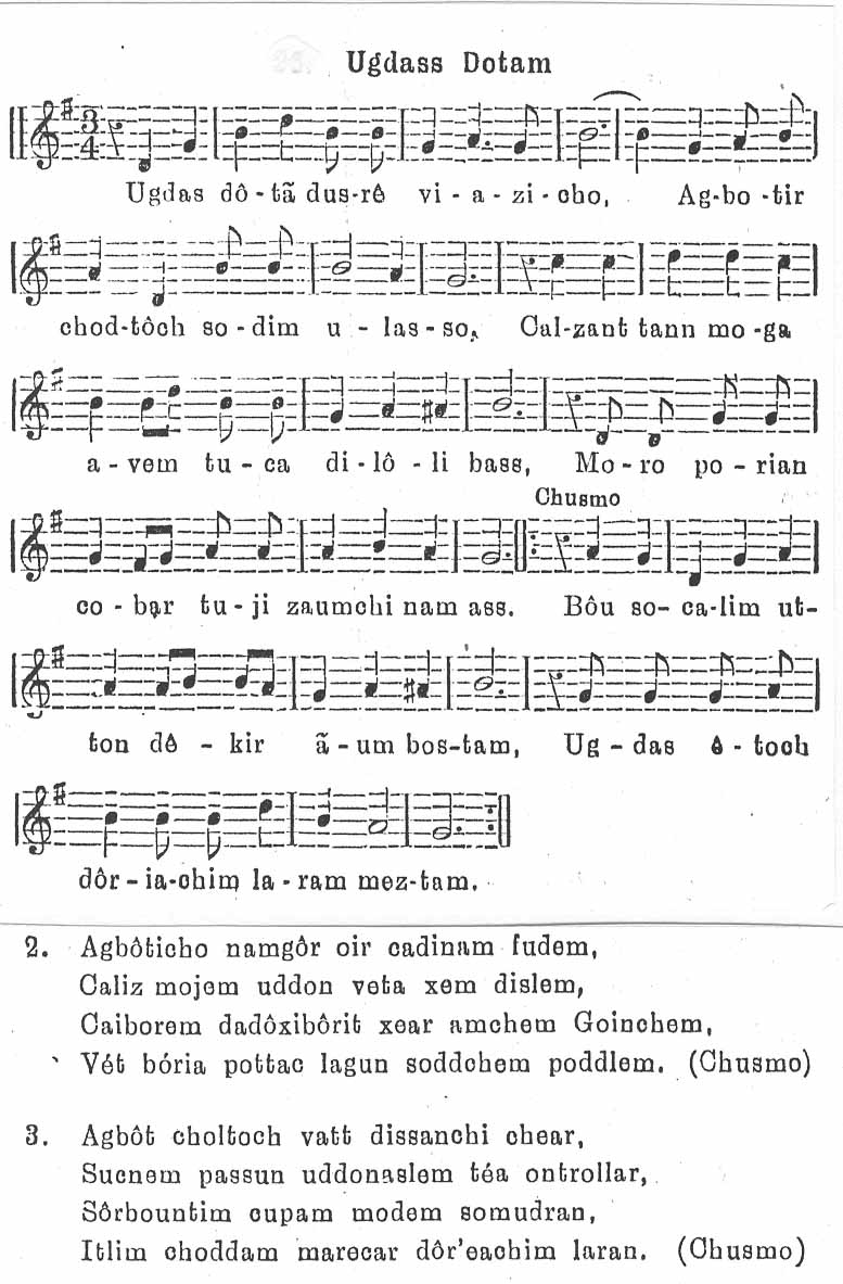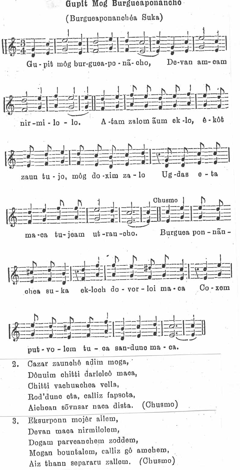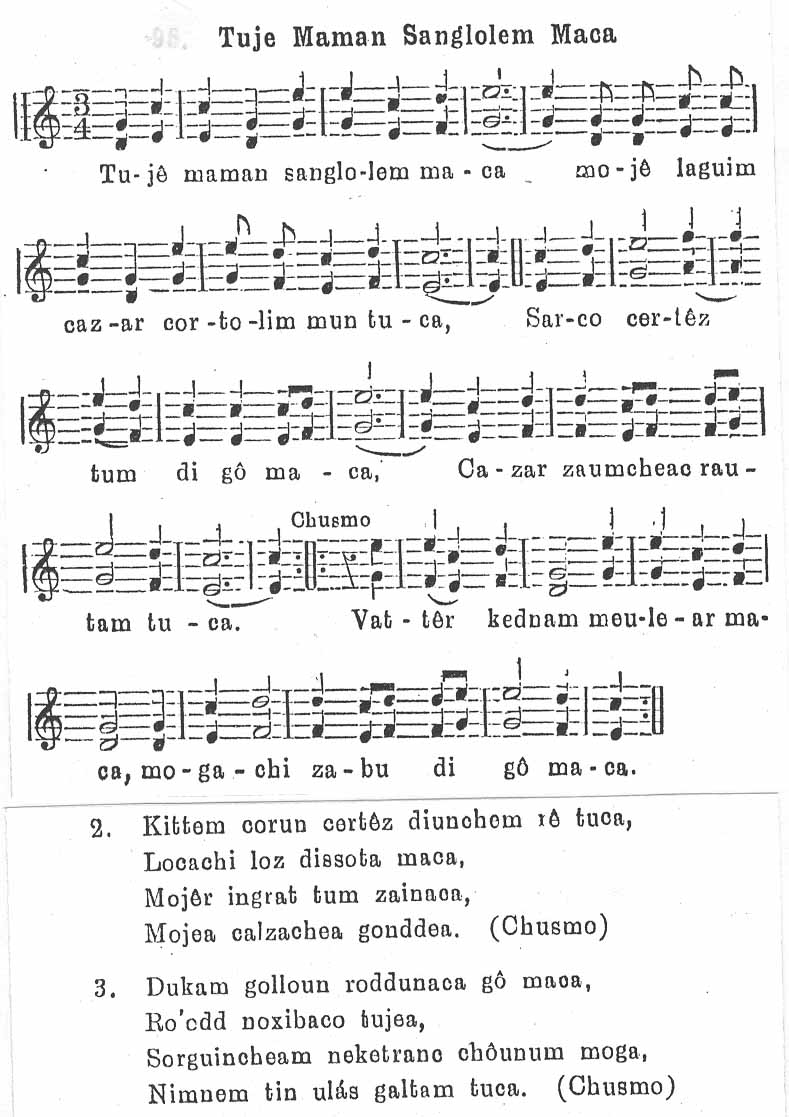 "Xiumtim mogrim ghe rê tuka, Sukh ani sontos dhi rê maca."