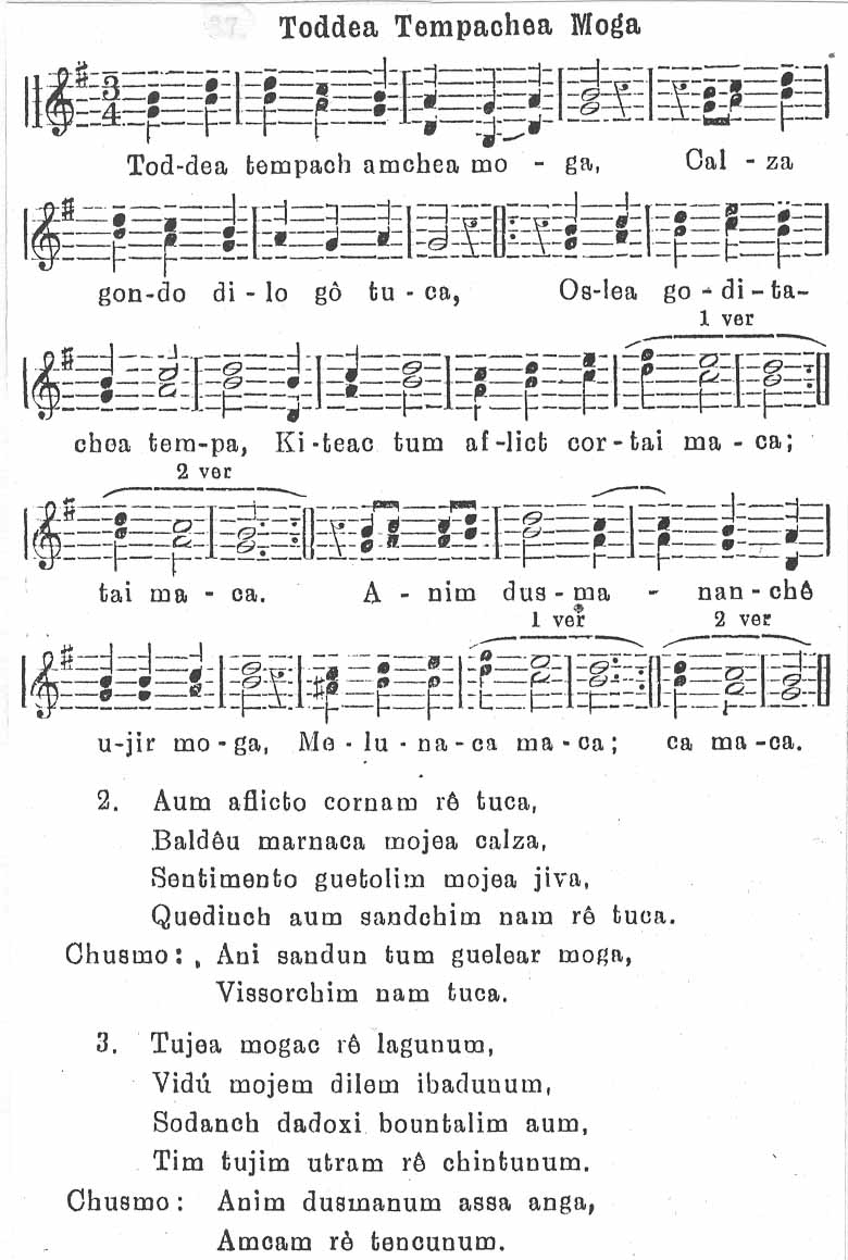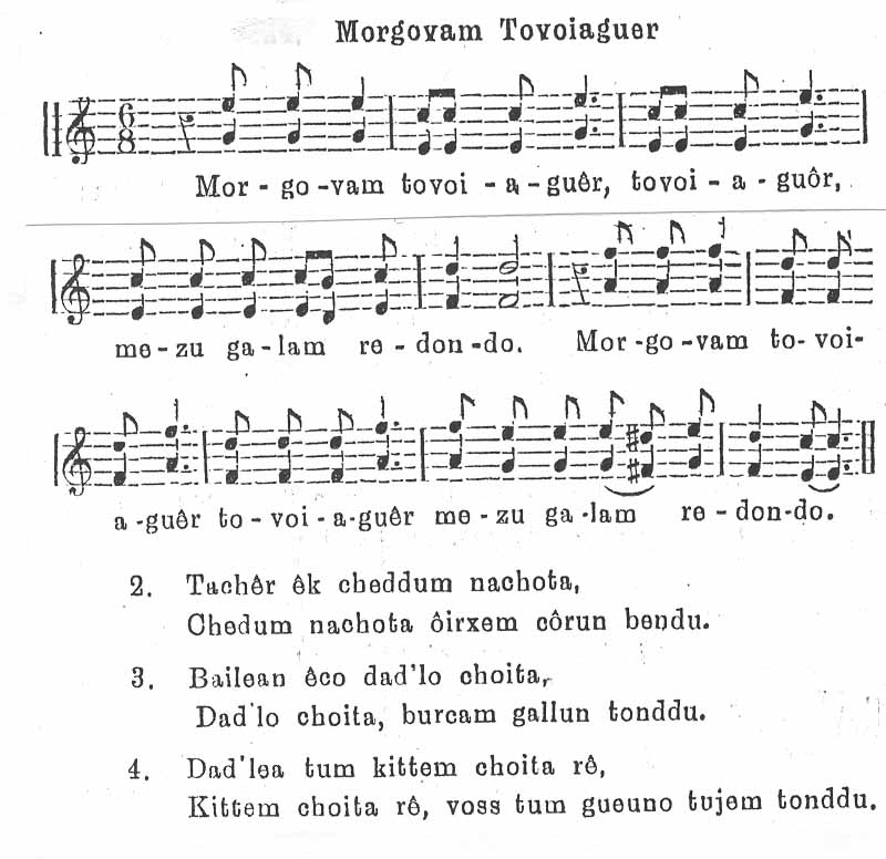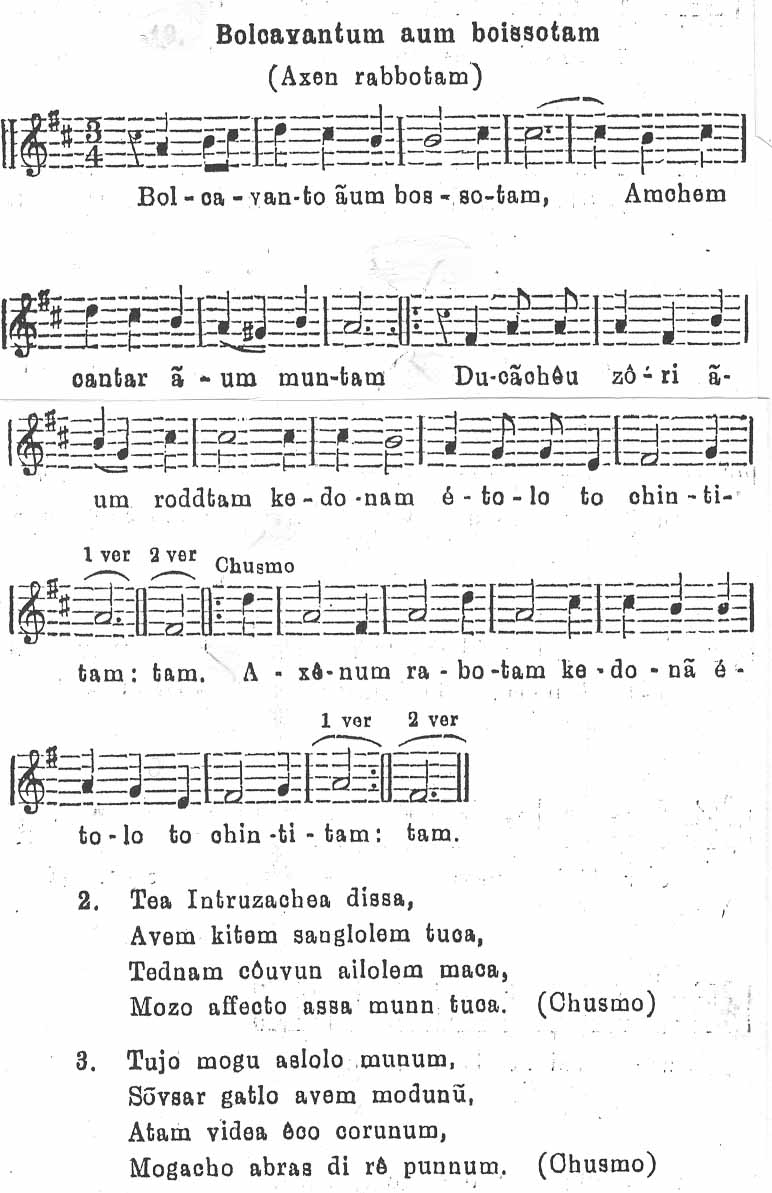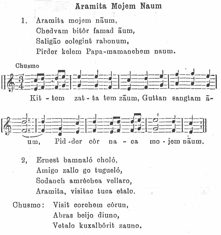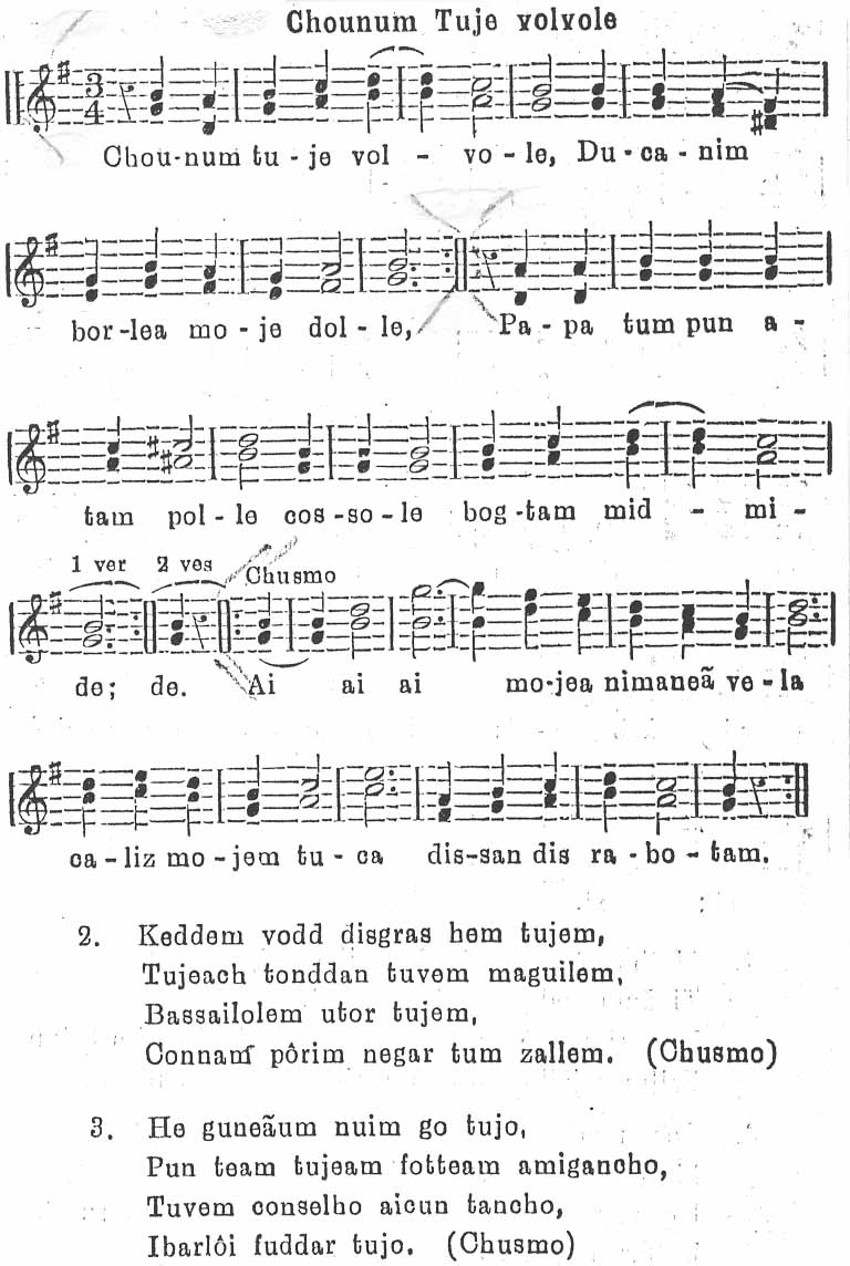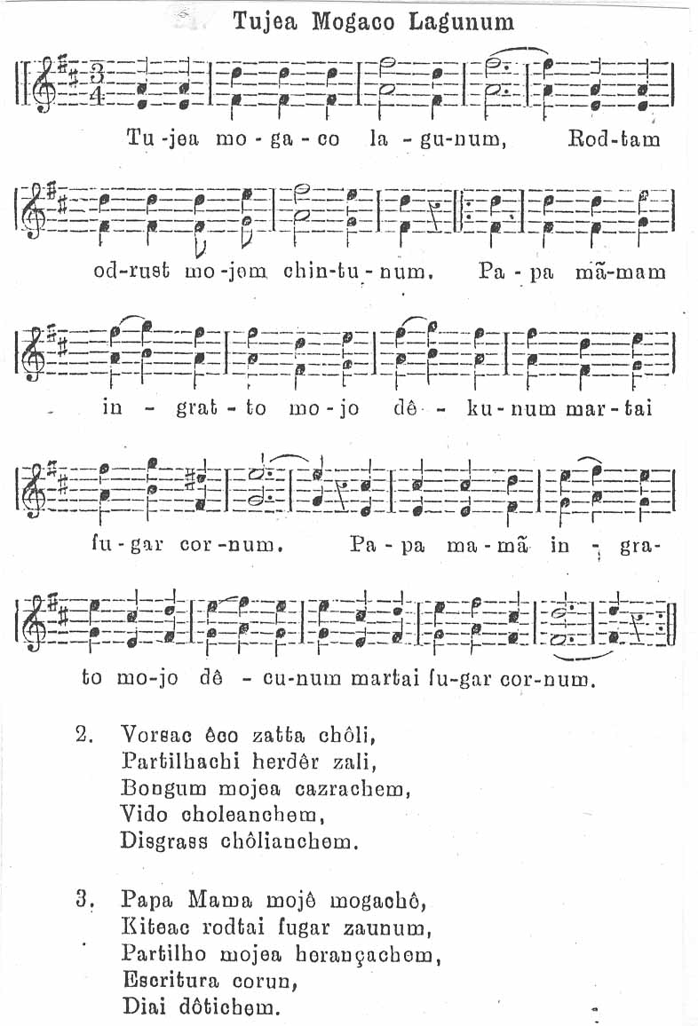 "Xiumtim mogrim ghe rê tuka, Sukh ani sontos dhi rê maca."