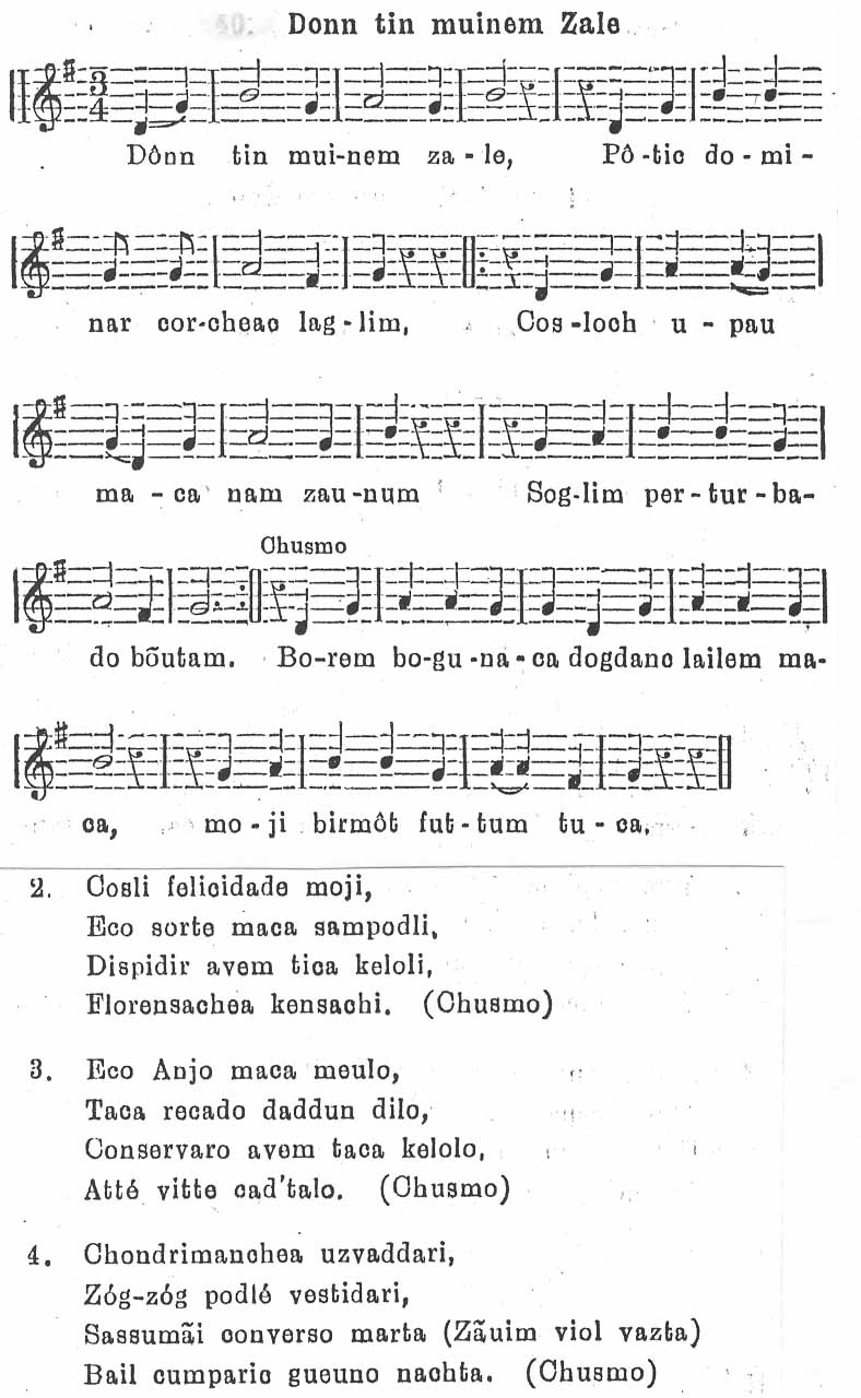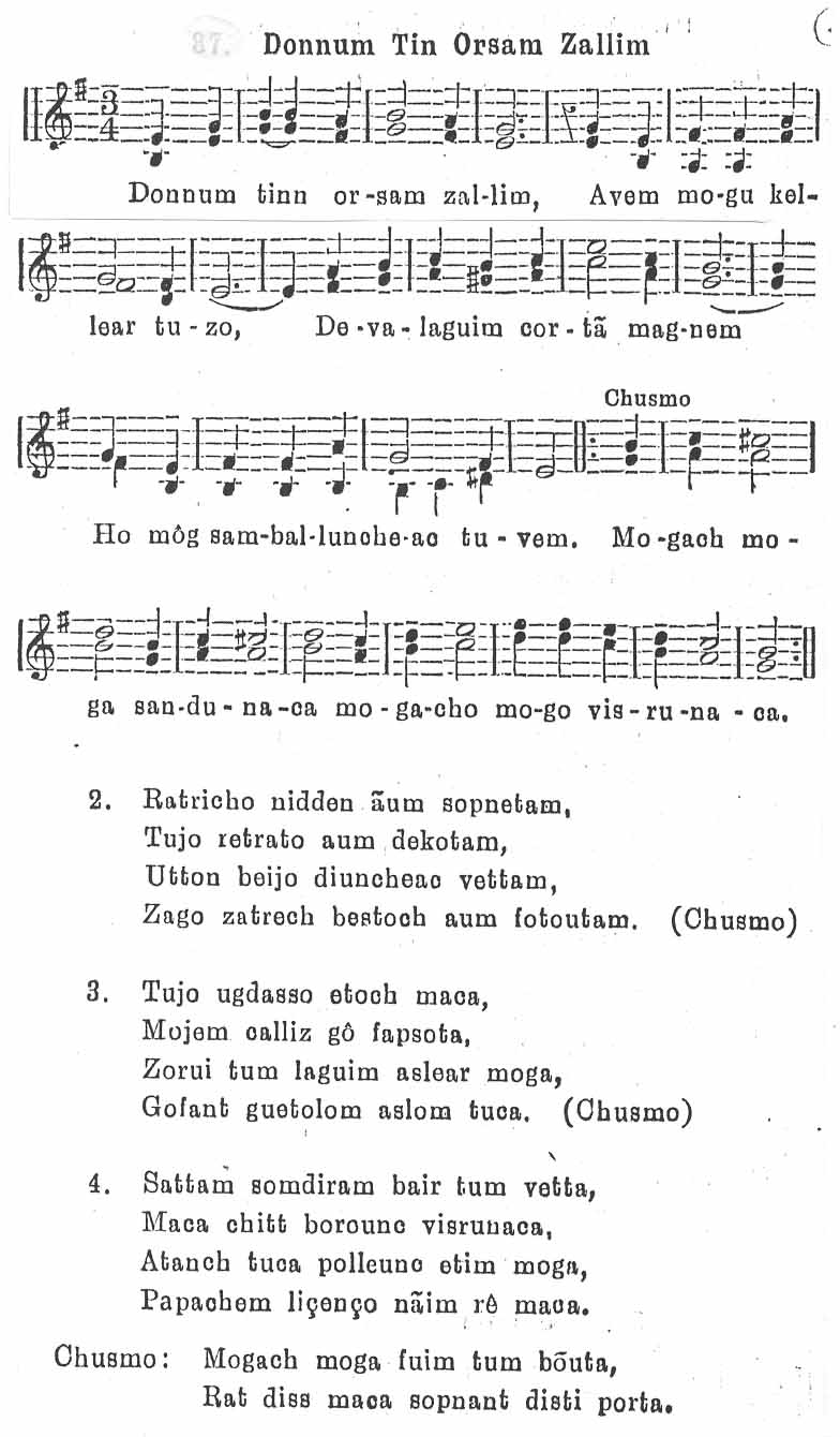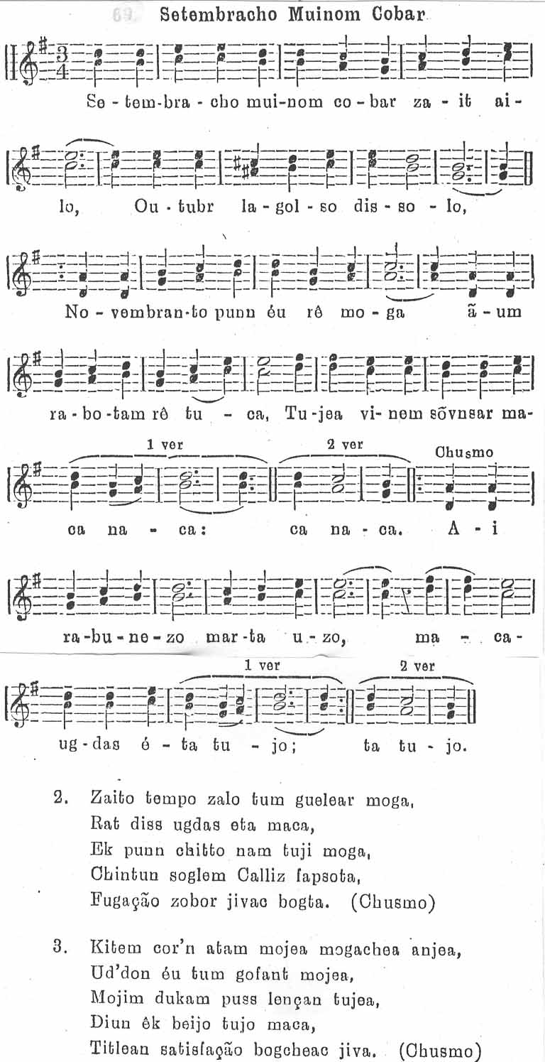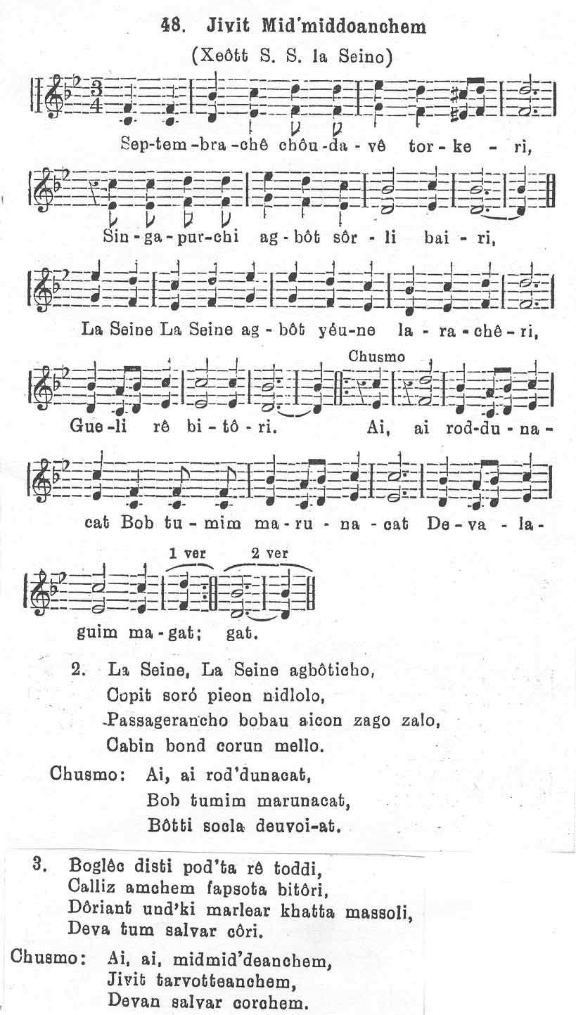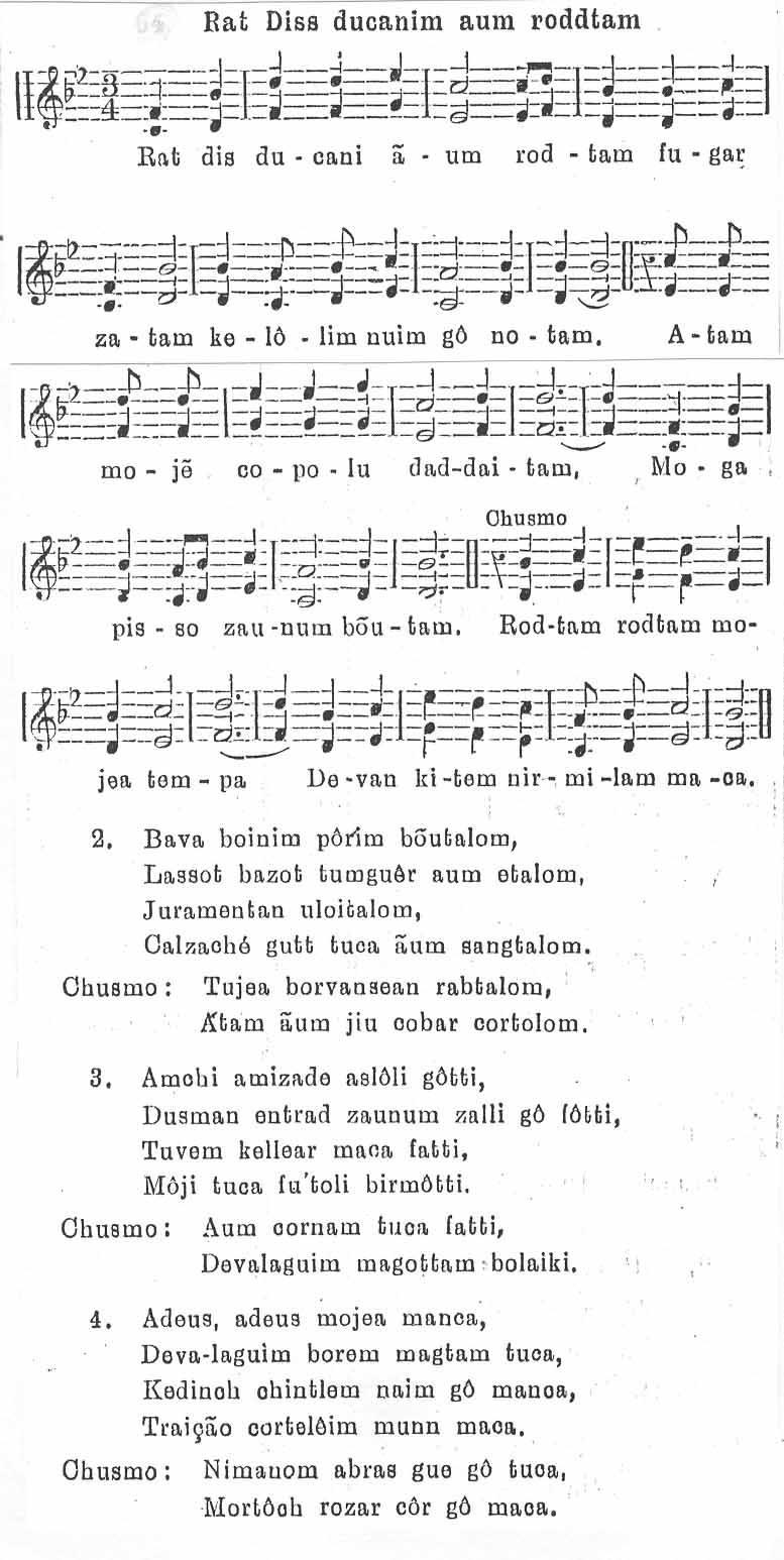 "Xiumtim mogrim ghe rê tuka, Sukh ani sontos dhi rê maca."