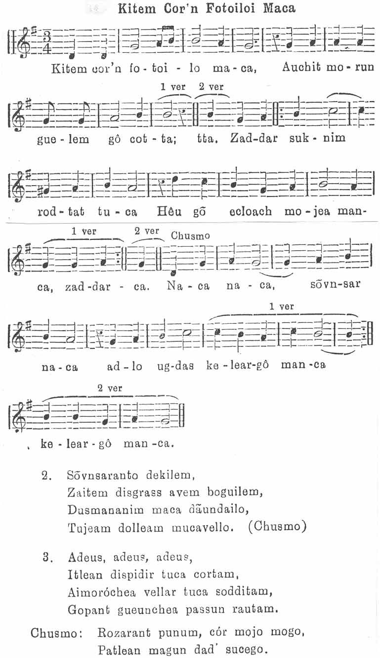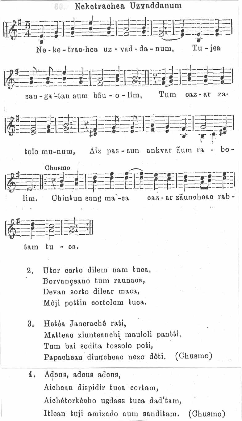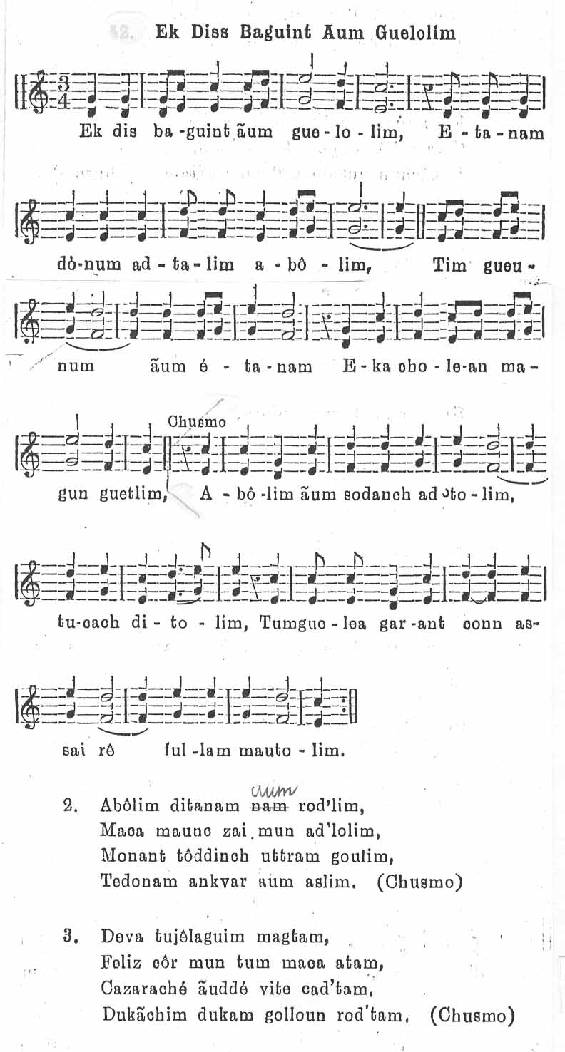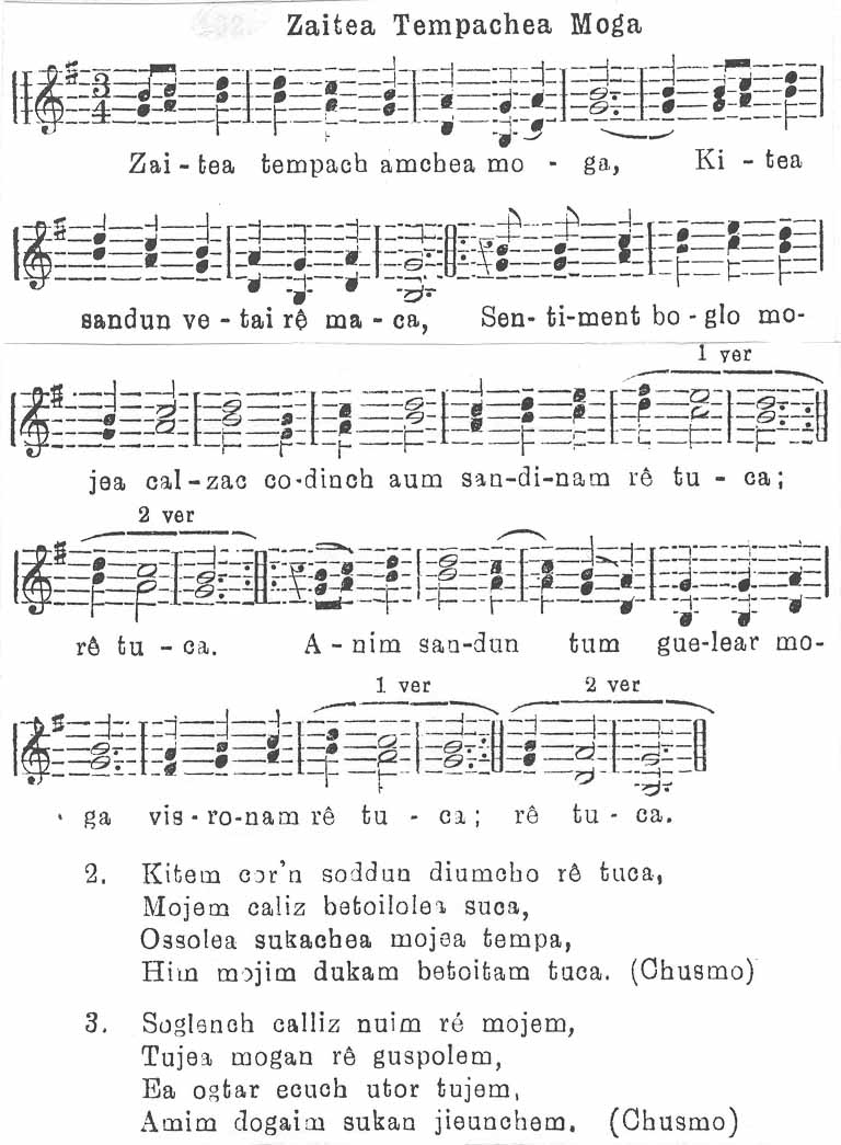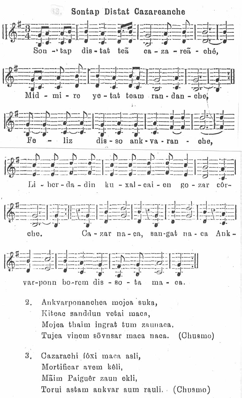 "Xiumtim mogrim ghe rê tuka, Sukh ani sontos dhi rê maca."