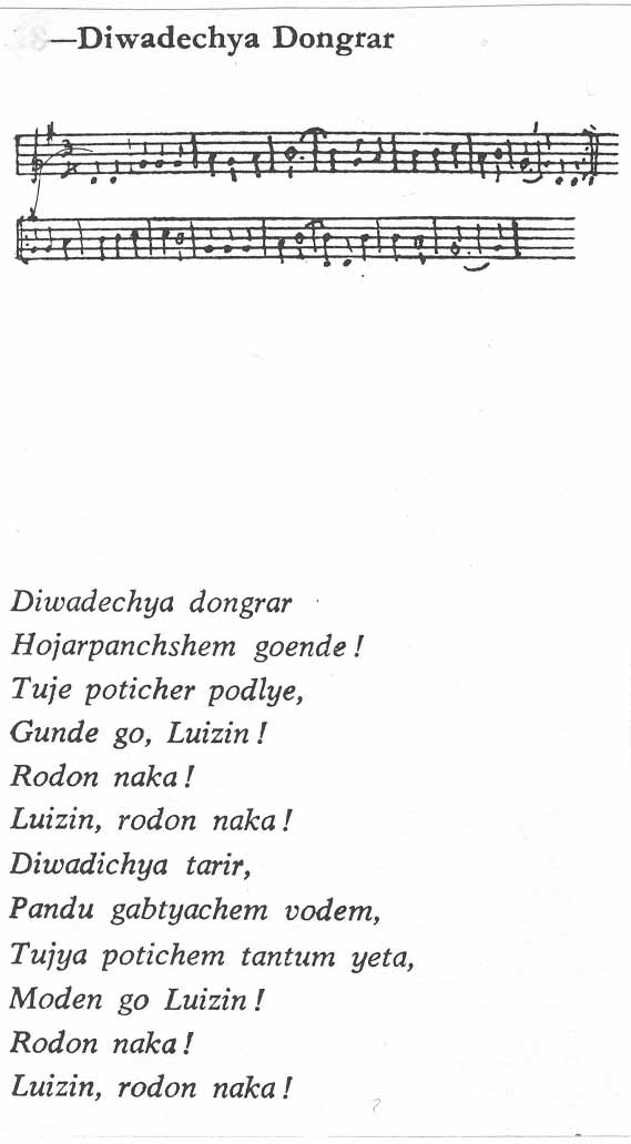 Since I have not yet been able to contact the author Vinayak Sadashiw Sukhtanker I have taken the risk of publishing his research work on this website. I take this opportunity of thanking him for his contribution to the Konkani-Song.