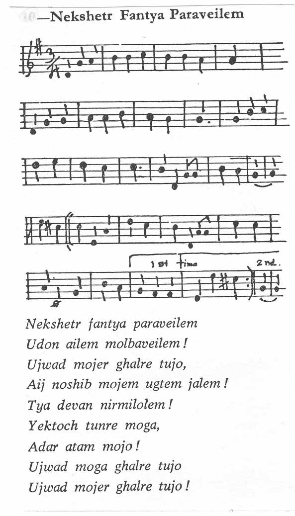 “Xiumtim mogrim ghe rê tuka, Sukh ani sontos dhi rê maca.”