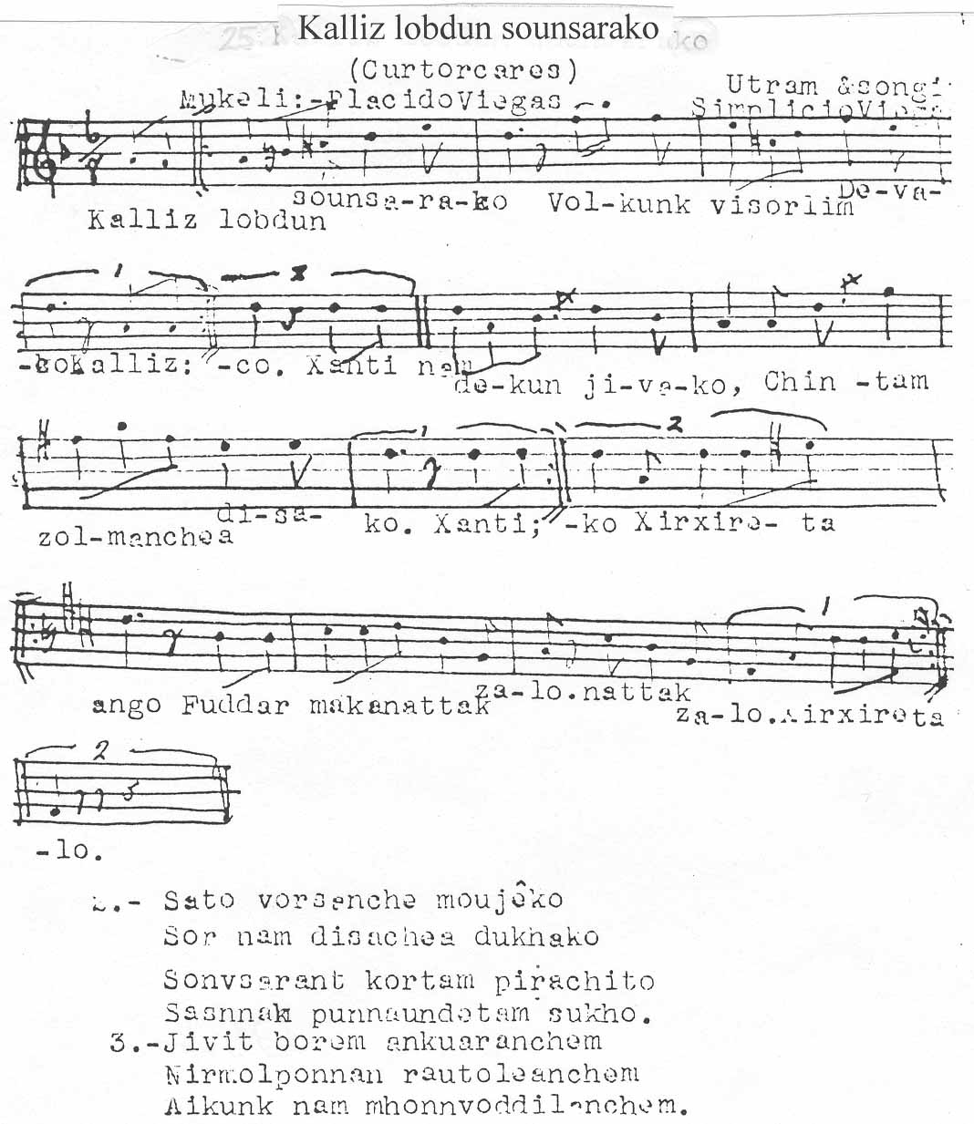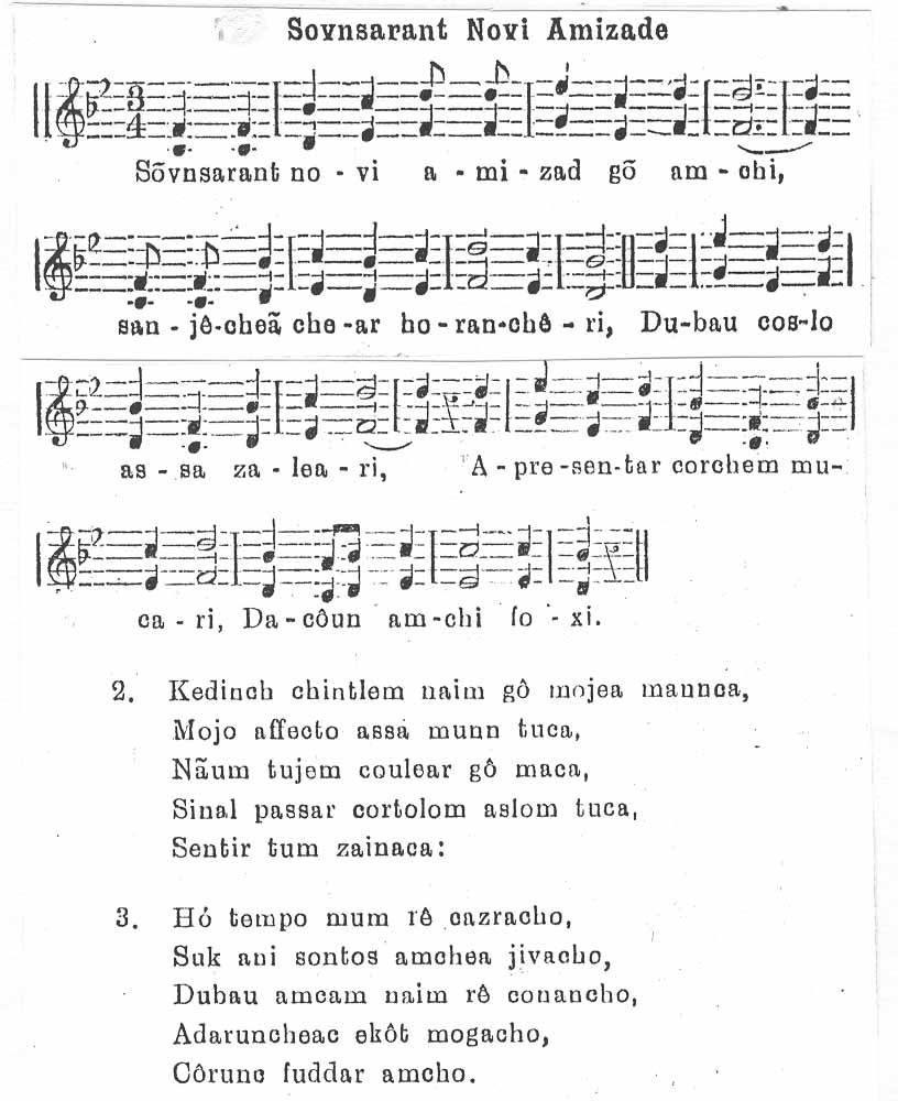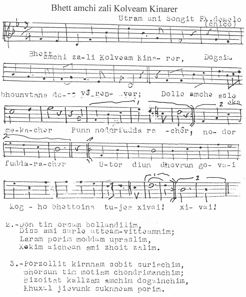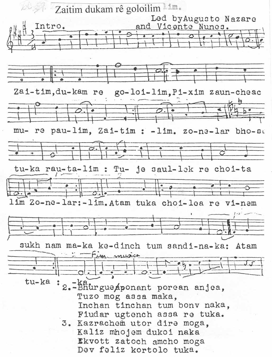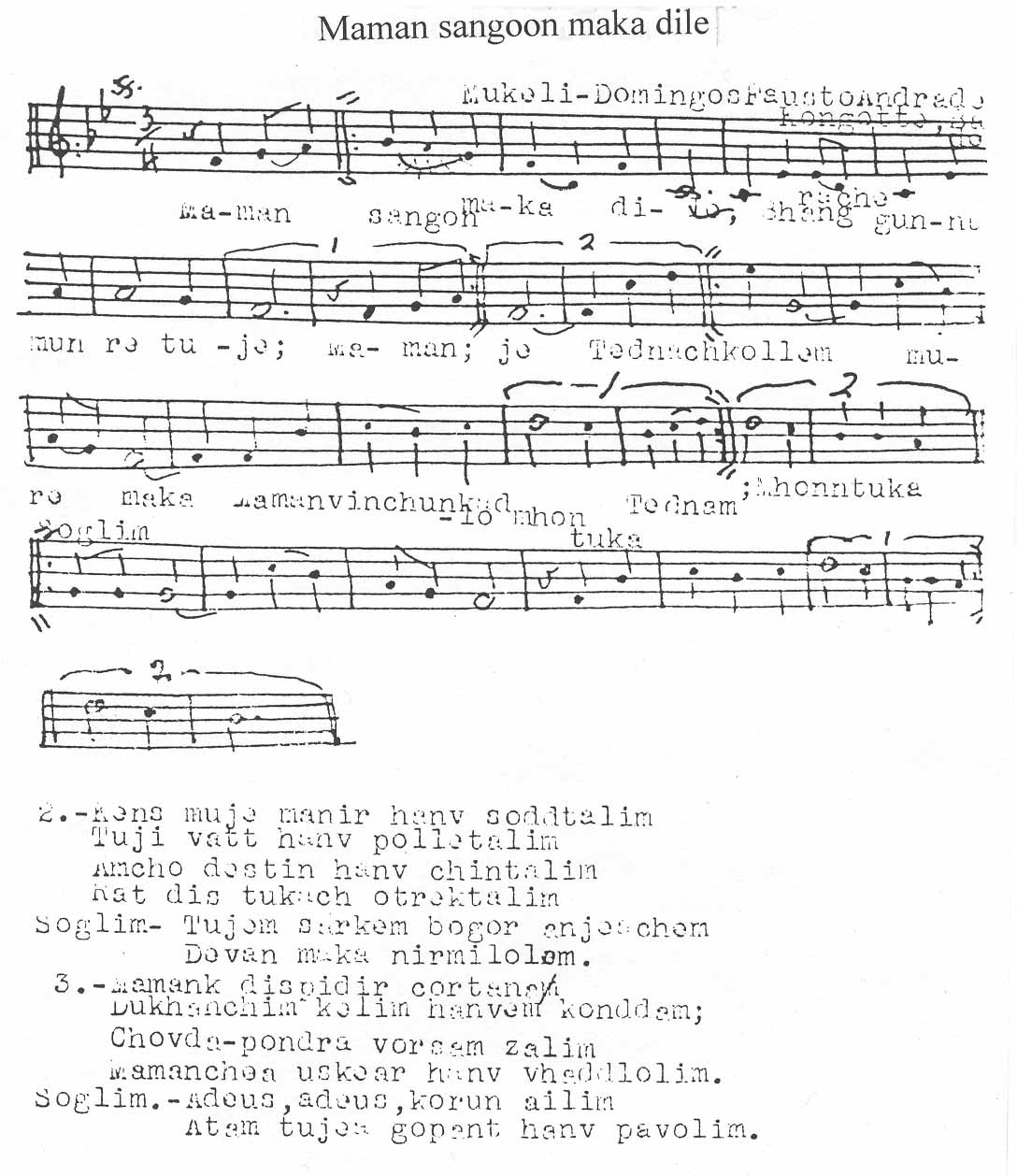 Mr. André Xett handed over the copyright to this anthology of dulpods and mandos personally to me in our home village Chorão, Goa. His son Mr. André Tiburcio Fernandes confirmed it in writing on 30th April, 2003. We thank them both for handing over this aspect of Goan culture to posterity. I would be only too happy if these songs are sung and find world wide circulation. The translation of these songs is to be found in the links "Dulpod" and "Mando".