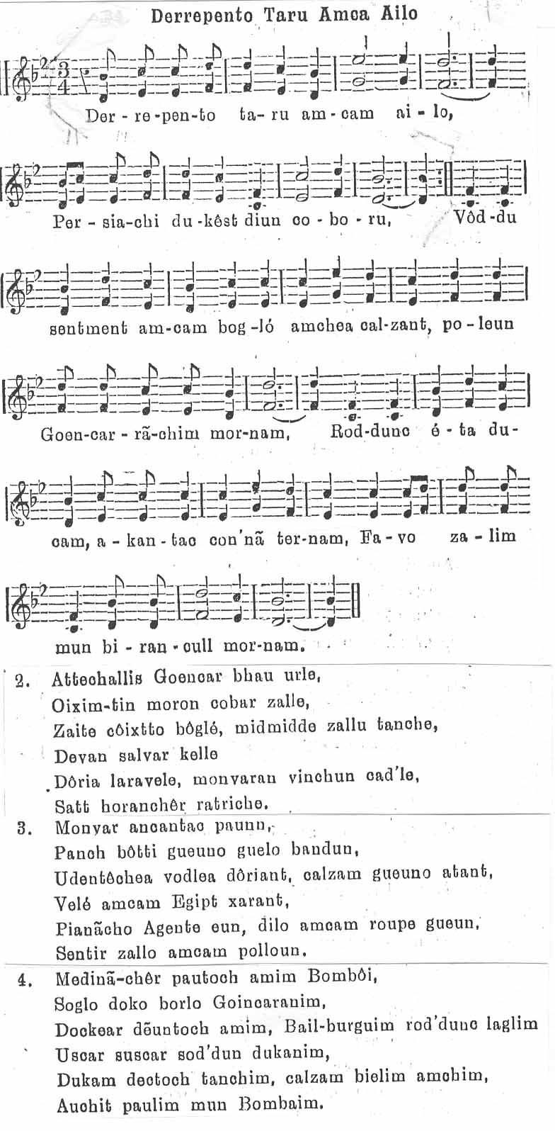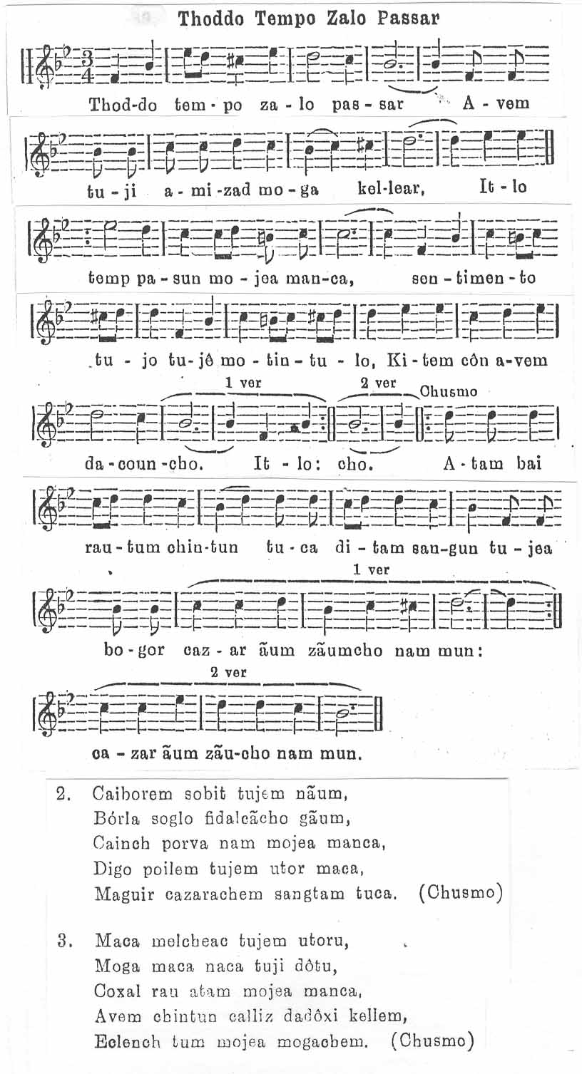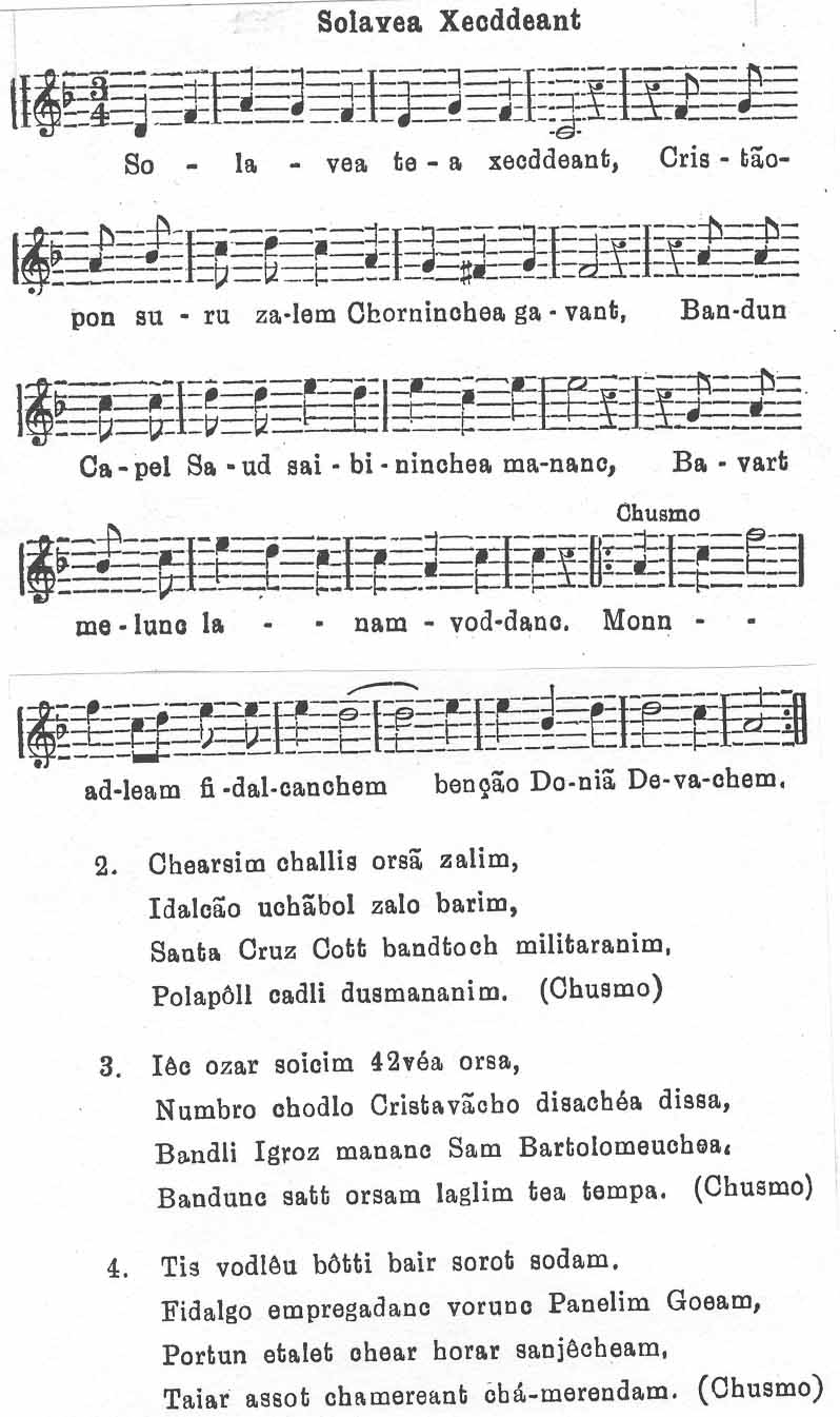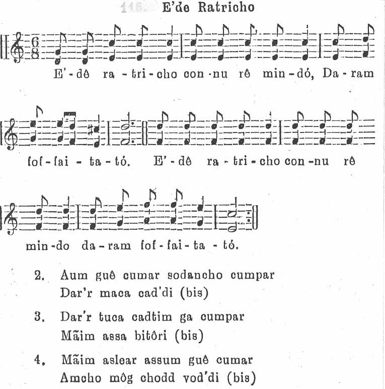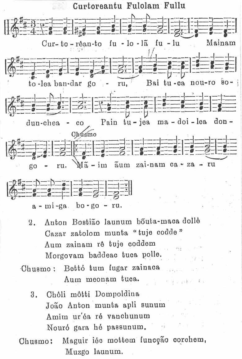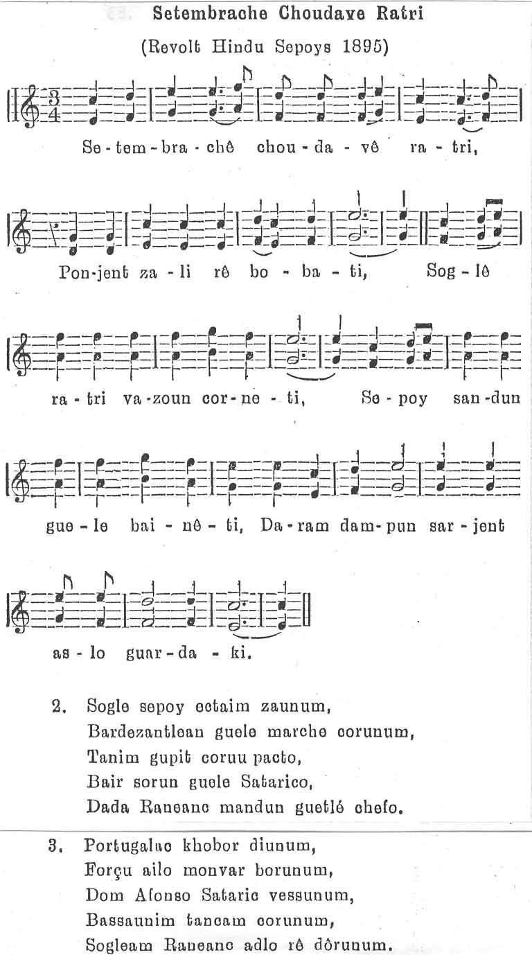 Mr. André Xett handed over the copyright to this anthology of dulpods and mandos personally to me in our home village Chorão, Goa. His son Mr. André Tiburcio Fernandes confirmed it in writing on 30th April, 2003. We thank them both for handing over this aspect of Goan culture to posterity. I would be only too happy if these songs are sung and find world wide circulation. The translation of these songs is to be found in the links "Dulpod" and "Mando".