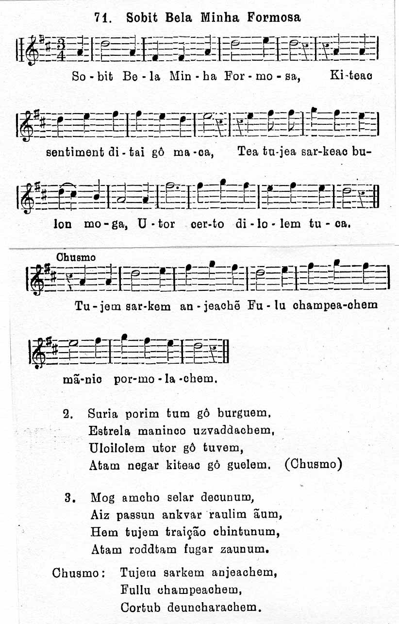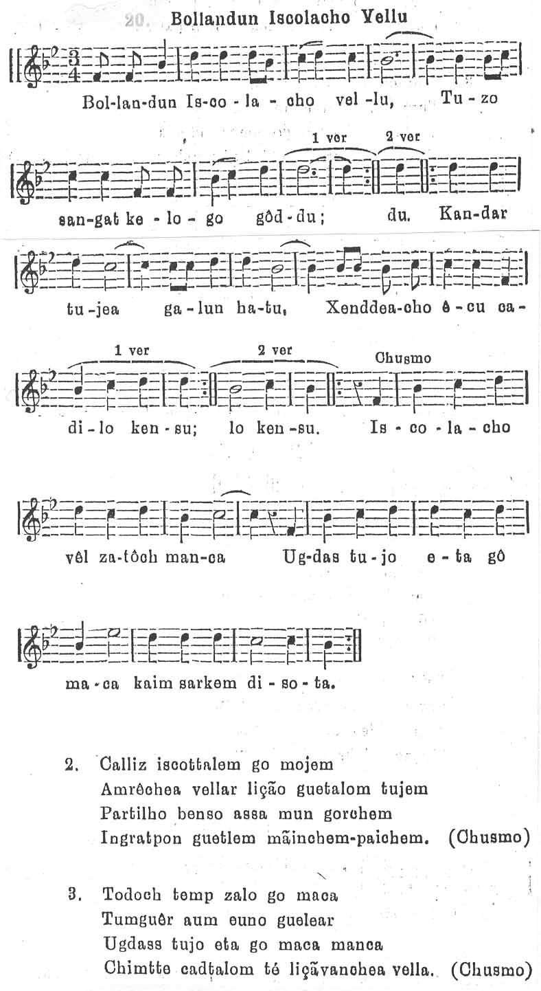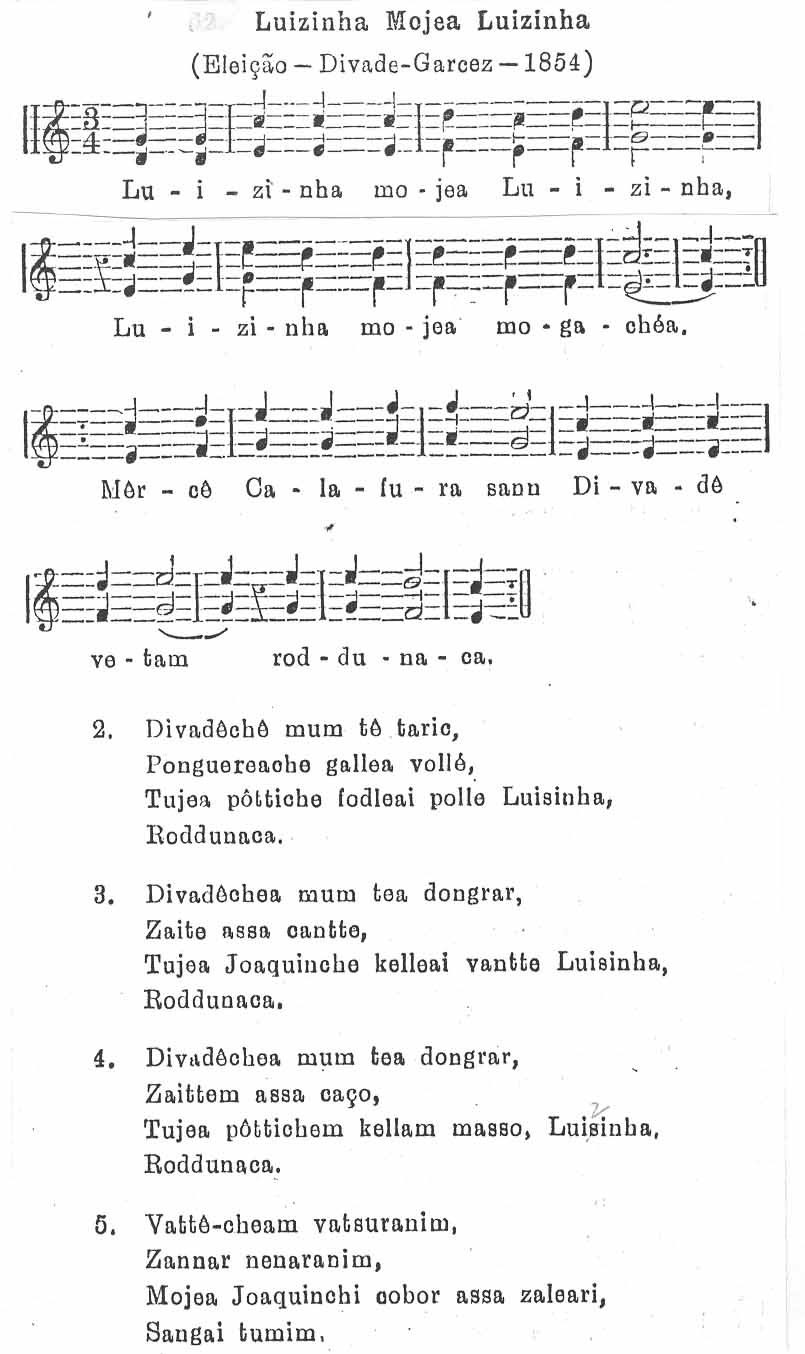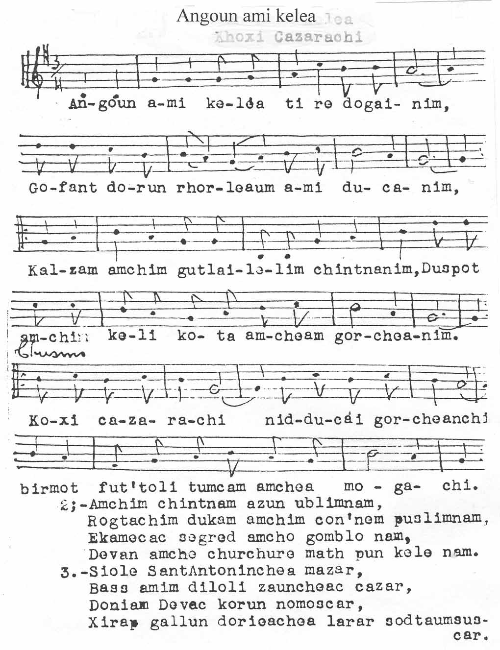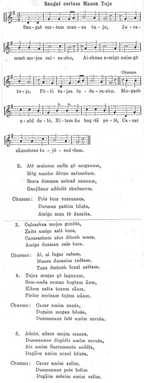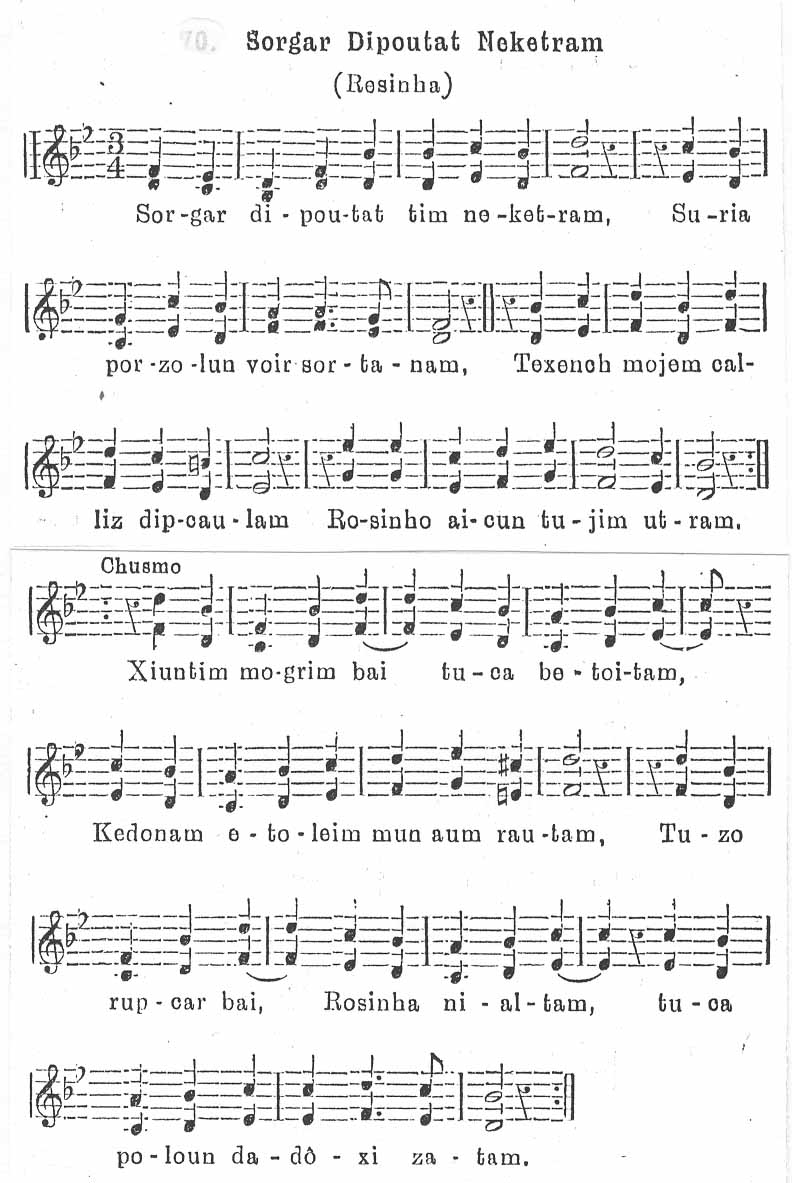 Mr. André Xett handed over the copyright to this anthology of dulpods and mandos personally to me in our home village Chorão, Goa. His son Mr. André Tiburcio Fernandes confirmed it in writing on 30th April, 2003. We thank them both for handing over this aspect of Goan culture to posterity. I would be only too happy if these songs are sung and find world wide circulation. The translation of these songs is to be found in the links "Dulpod" and "Mando".