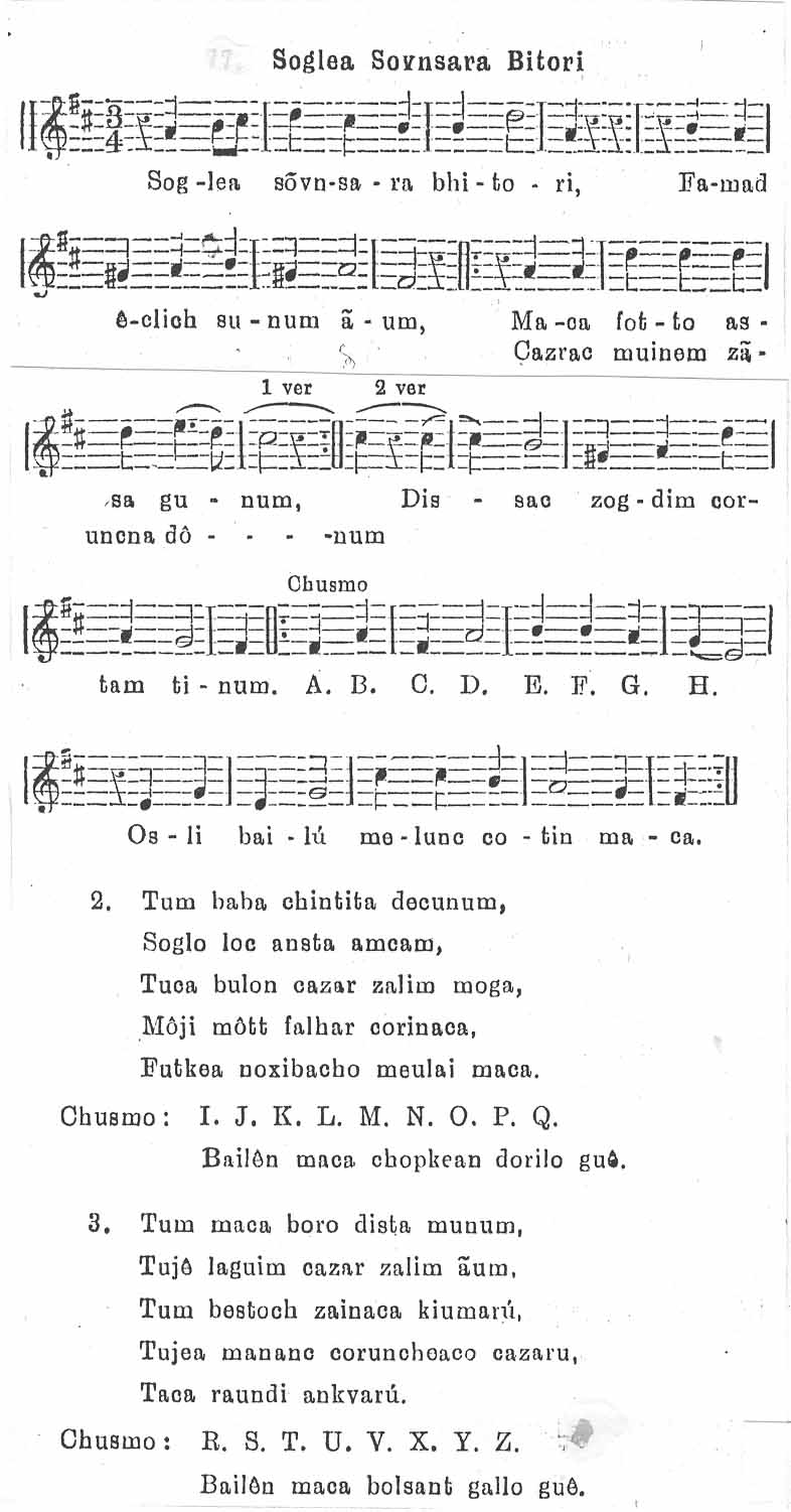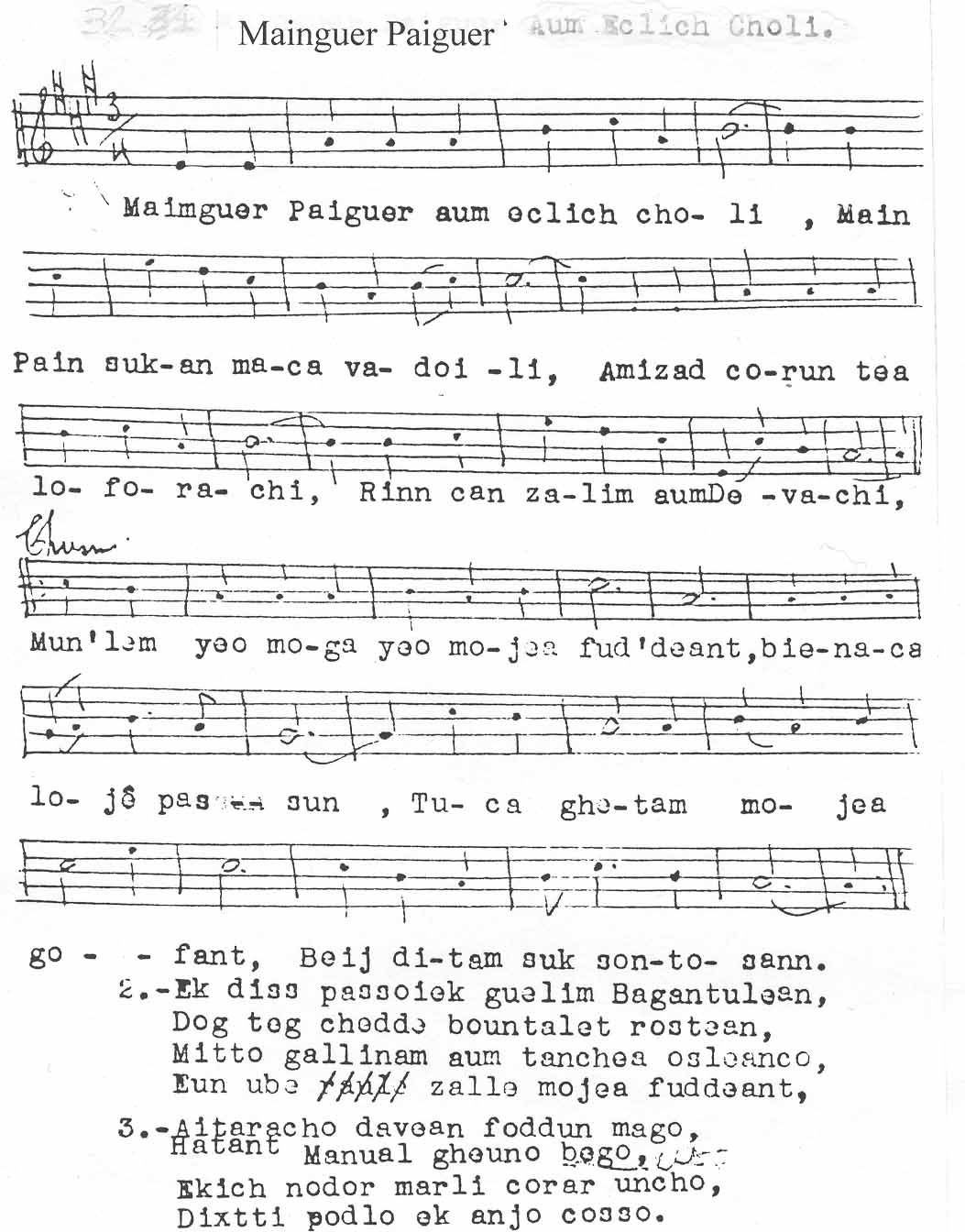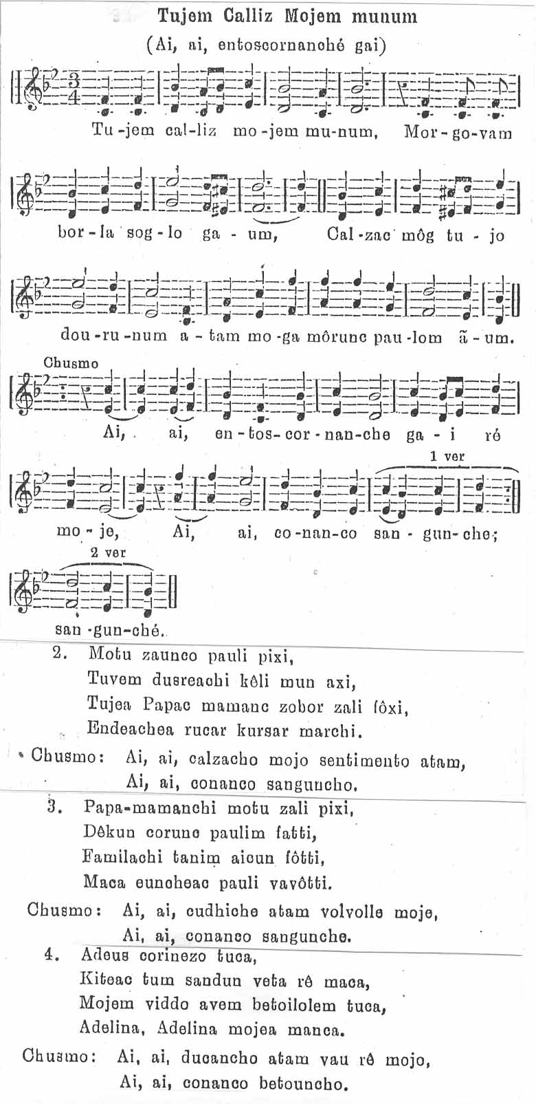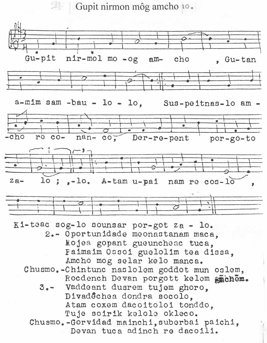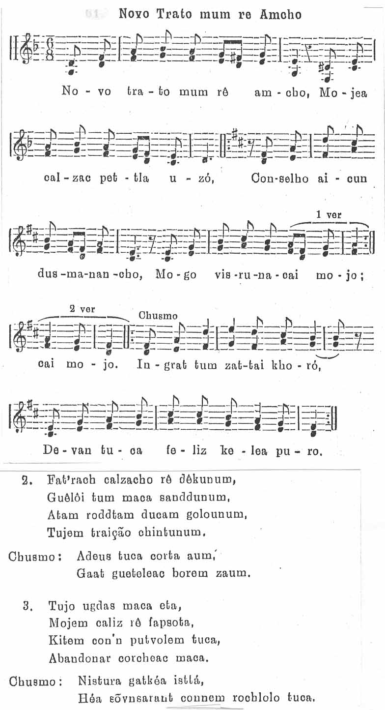 Mr. André Xett handed over the copyright to this anthology of dulpods and mandos personally to me in our home village Chorão, Goa. His son Mr. André Tiburcio Fernandes confirmed it in writing on 30th April, 2003. We thank them both for handing over this aspect of Goan culture to posterity. I would be only too happy if these songs are sung and find world wide circulation. The translation of these songs is to be found in the links "Dulpod" and "Mando".