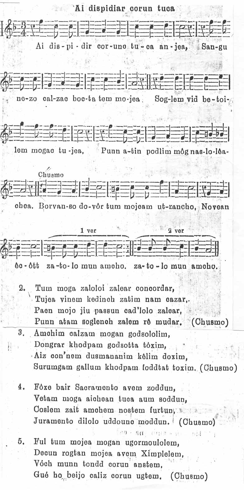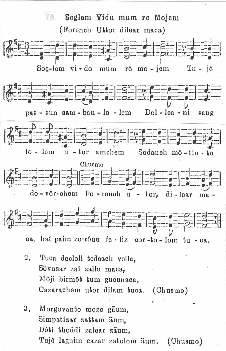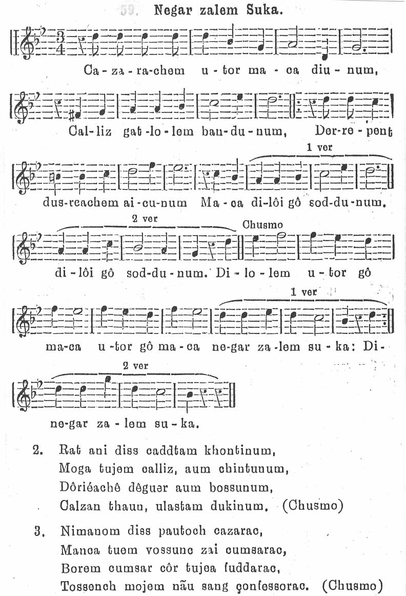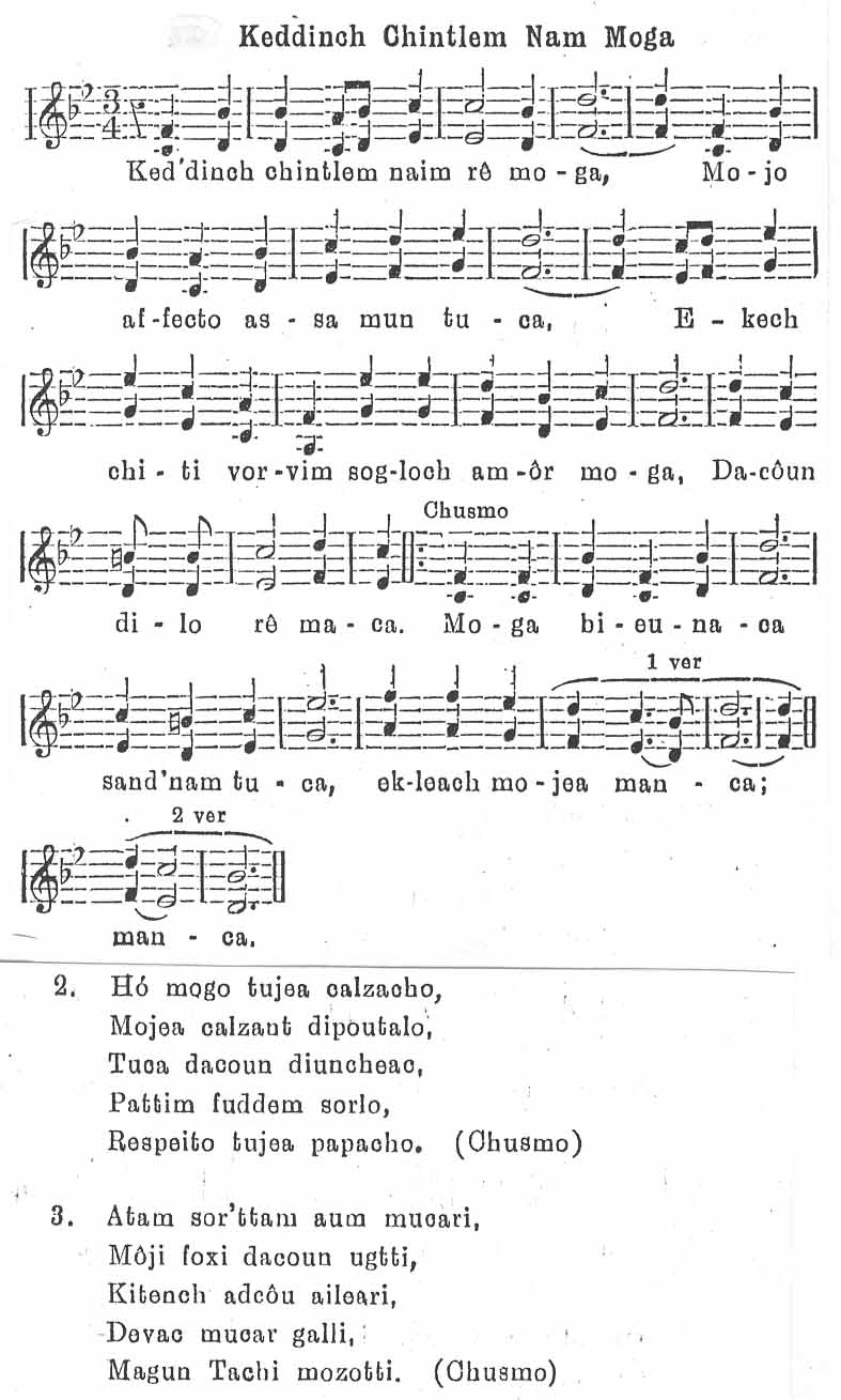 "Xiumtim mogrim ghe rê tuka, Sukh ani sontos dhi rê maca."