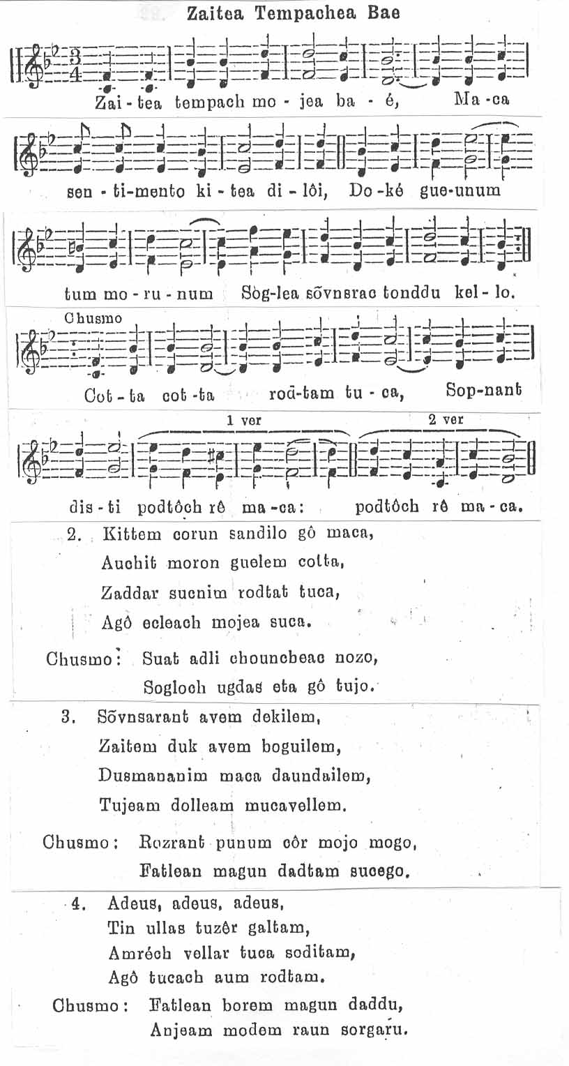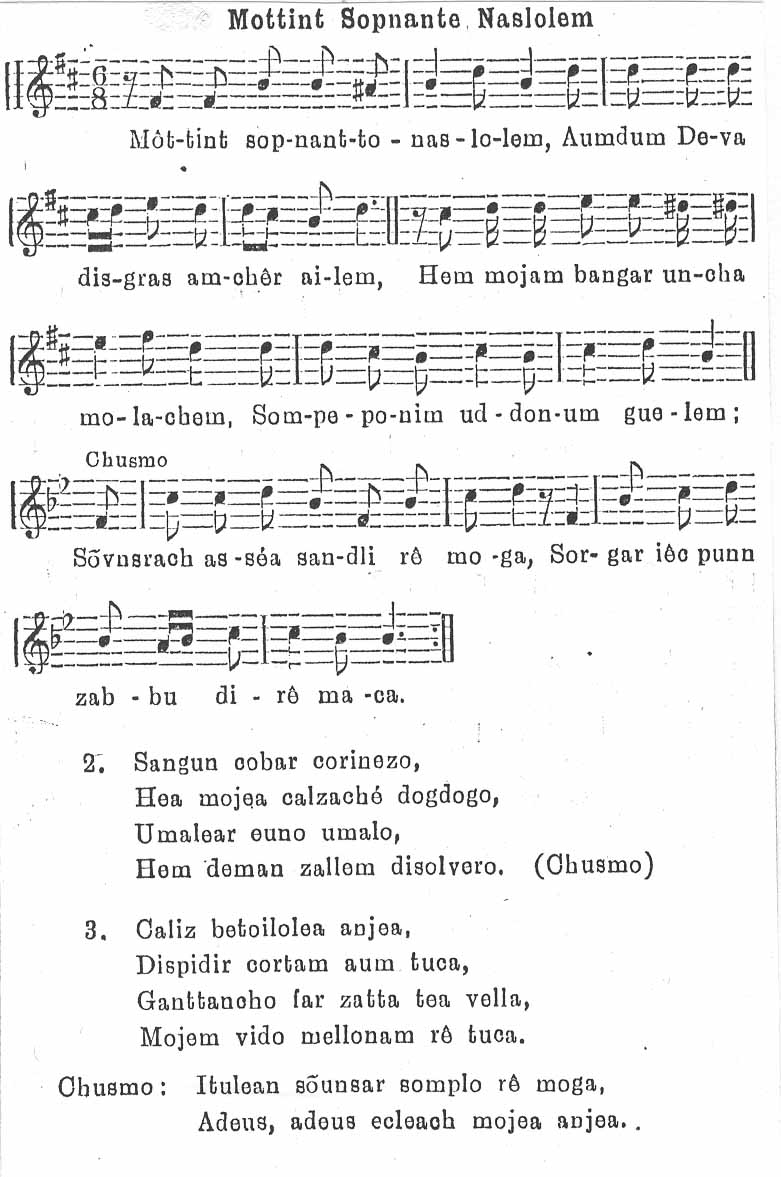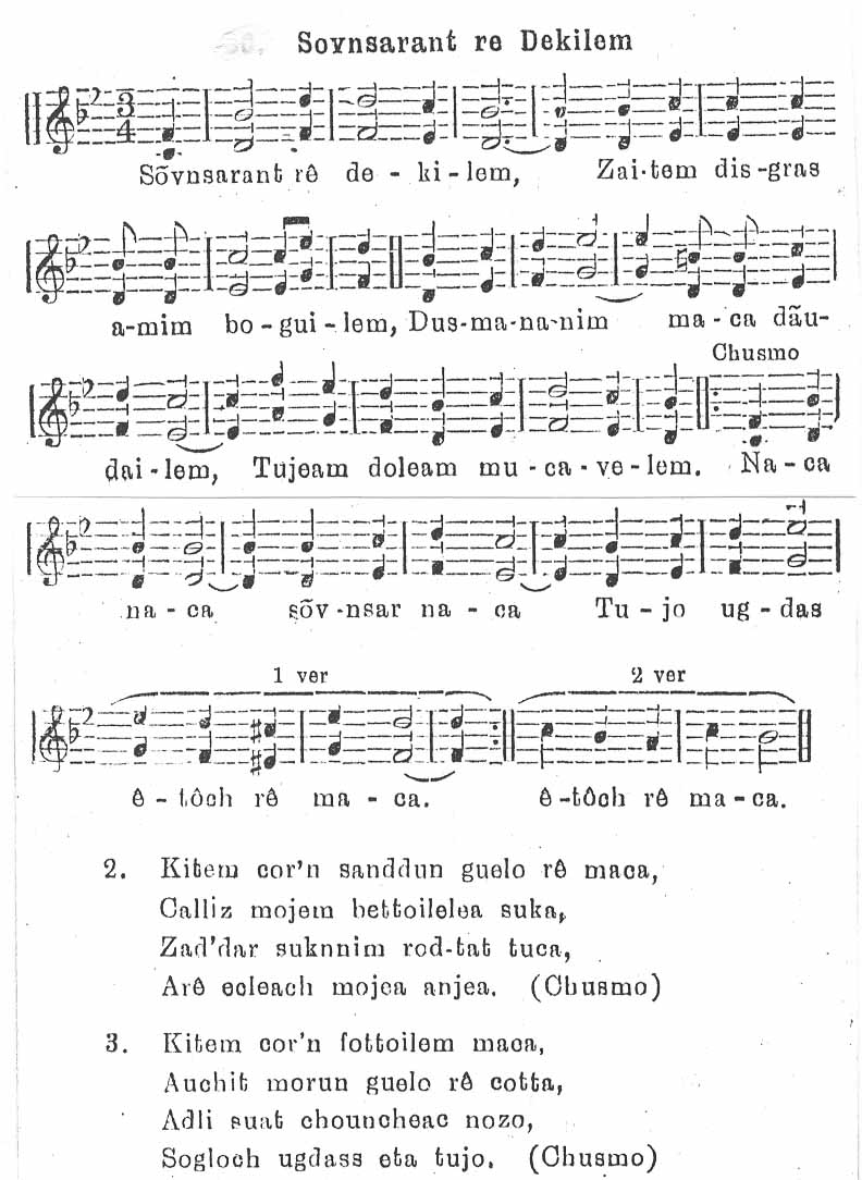 "Xiumtim mogrim ghe rê tuka, Sukh ani sontos dhi rê maca."
