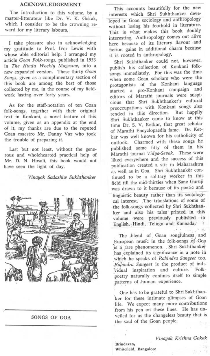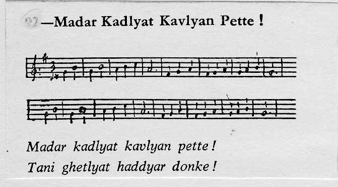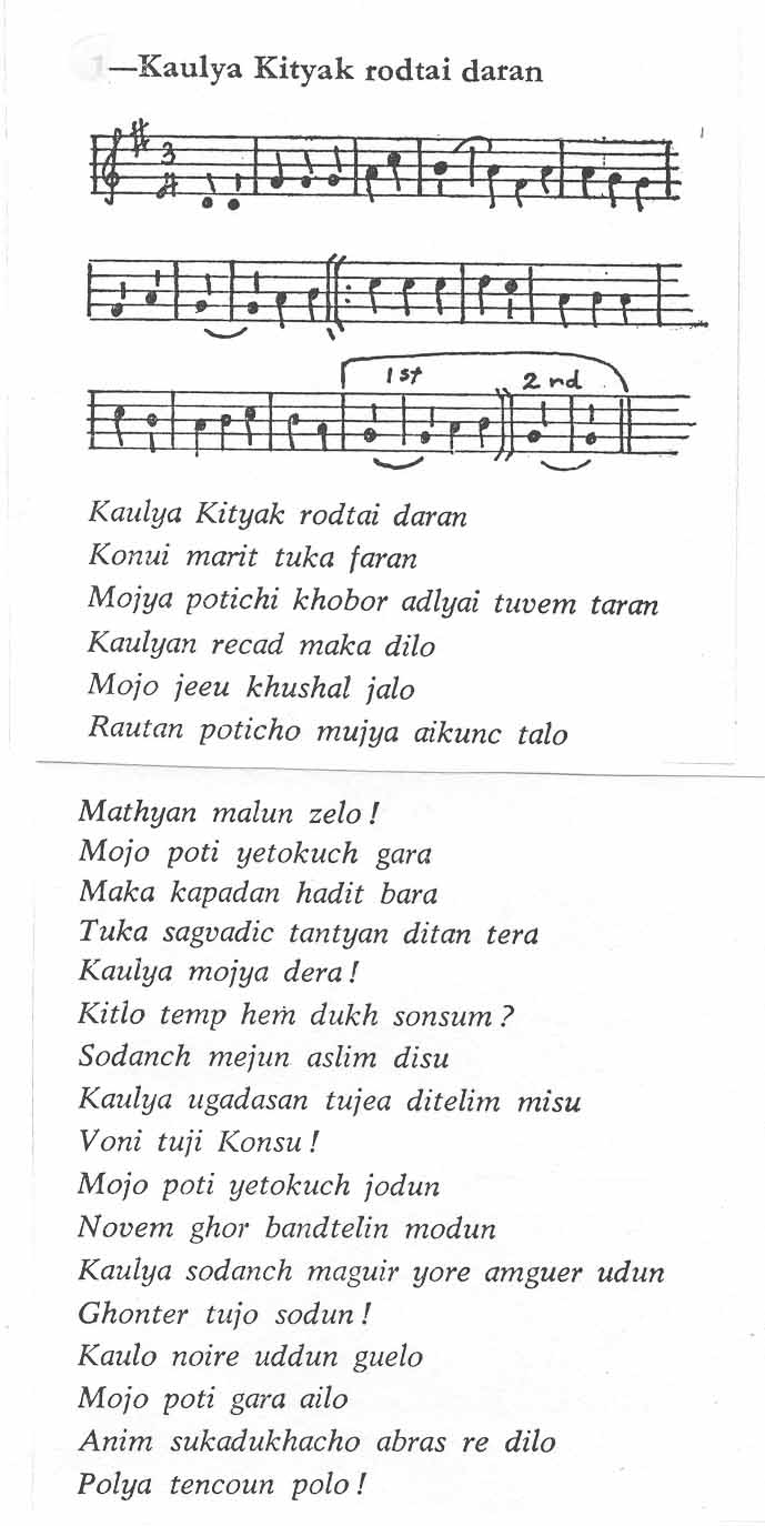 Since I have not yet been able to contact the author Vinayak Sadashiw Sukhtanker I have taken the risk of publishing his research work on this website. I take this opportunity of thanking him for his contribution to the Konkani-Song.