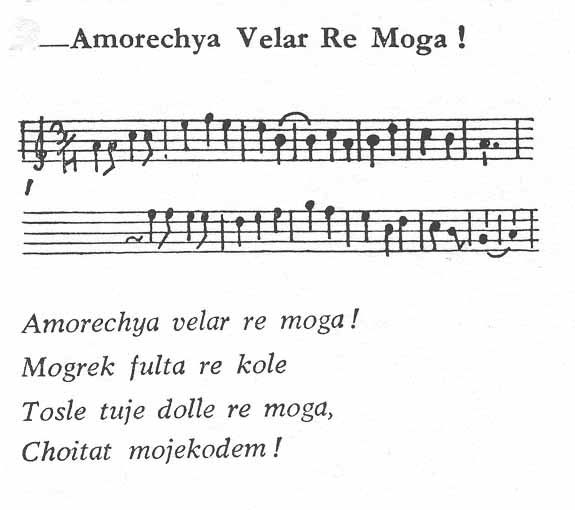 “Xiumtim mogrim ghe rê tuka, Sukh ani sontos dhi rê maca.”